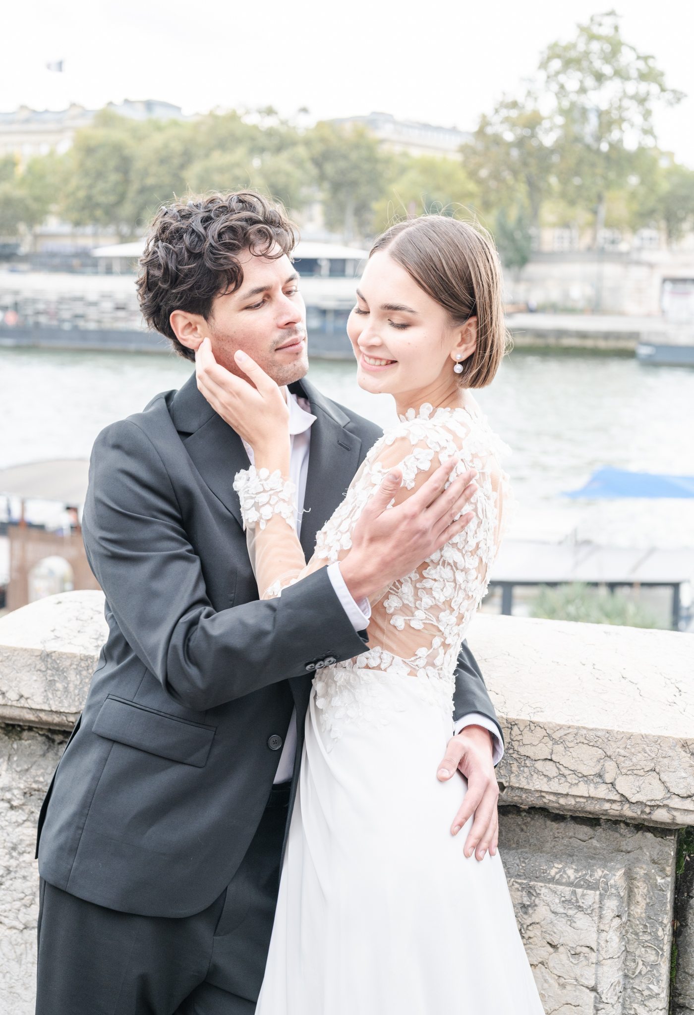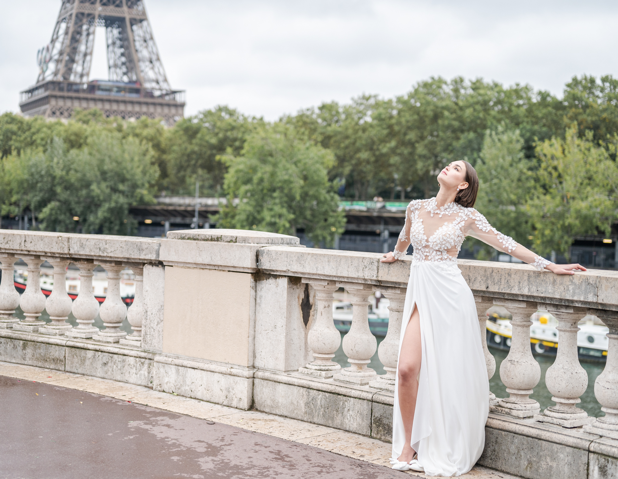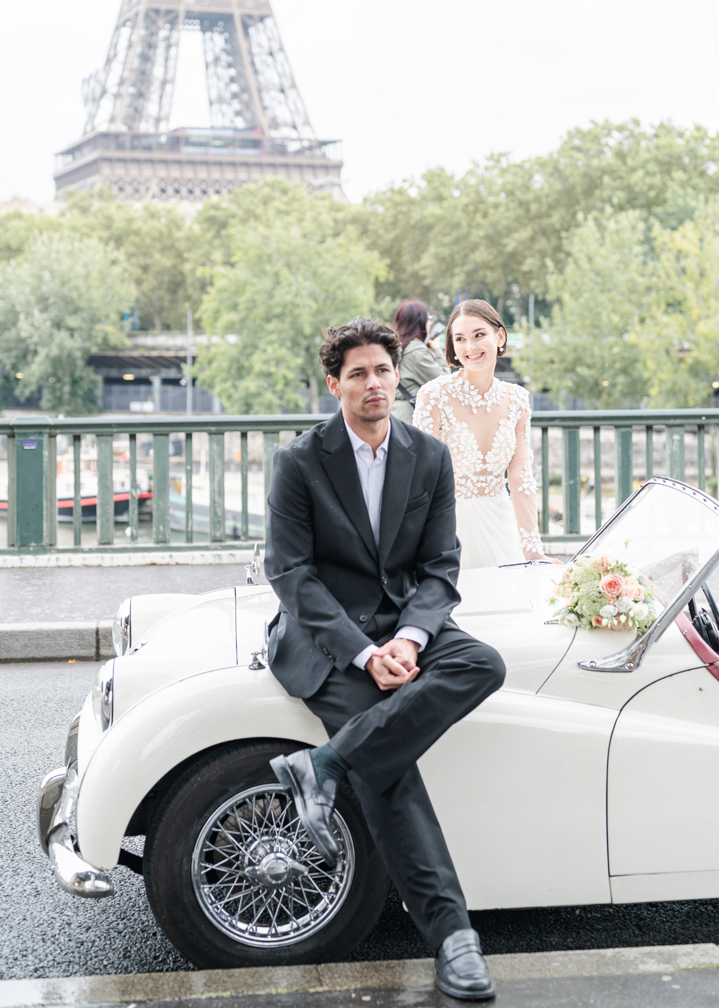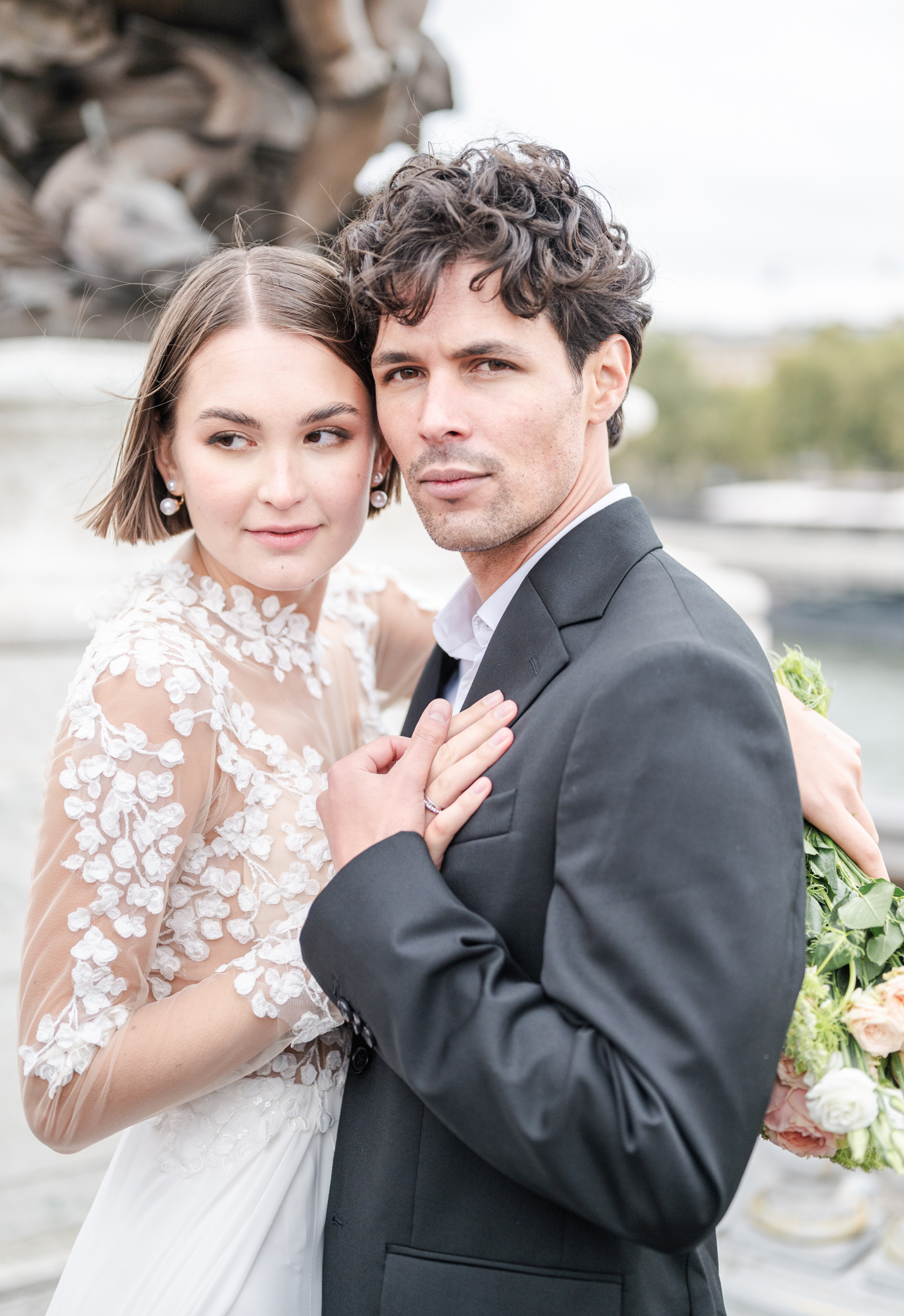 J’aime emmener mes mariés dans les lieux les plus emblématiques de Paris : une séance romantique au Trocadéro avec la Tour Eiffel en arrière-plan, une promenade main dans la main sur les Quais de Seine, ou encore quelques instants suspendus devant le Pont Alexandre III, véritable décor de cinéma.
