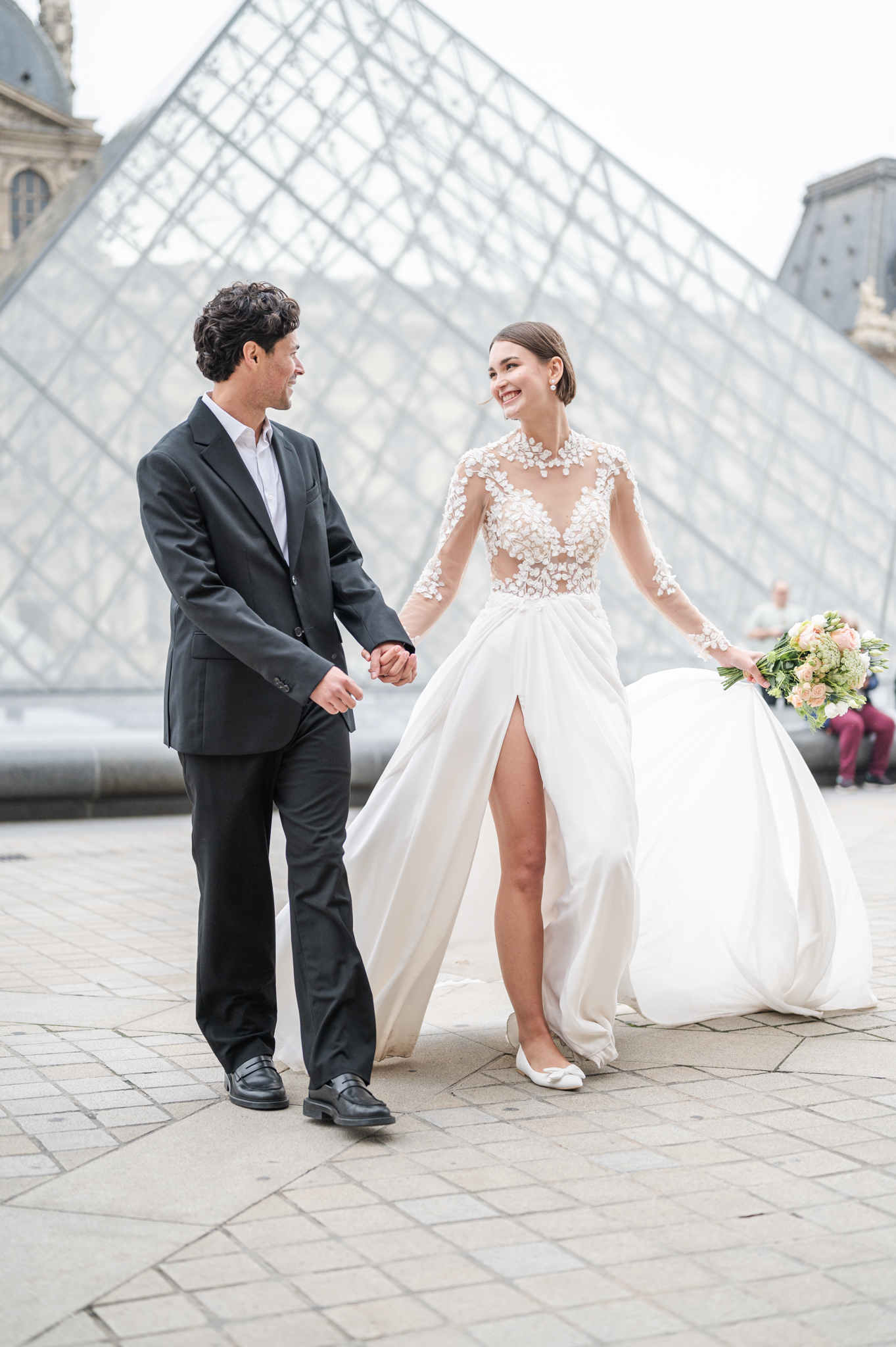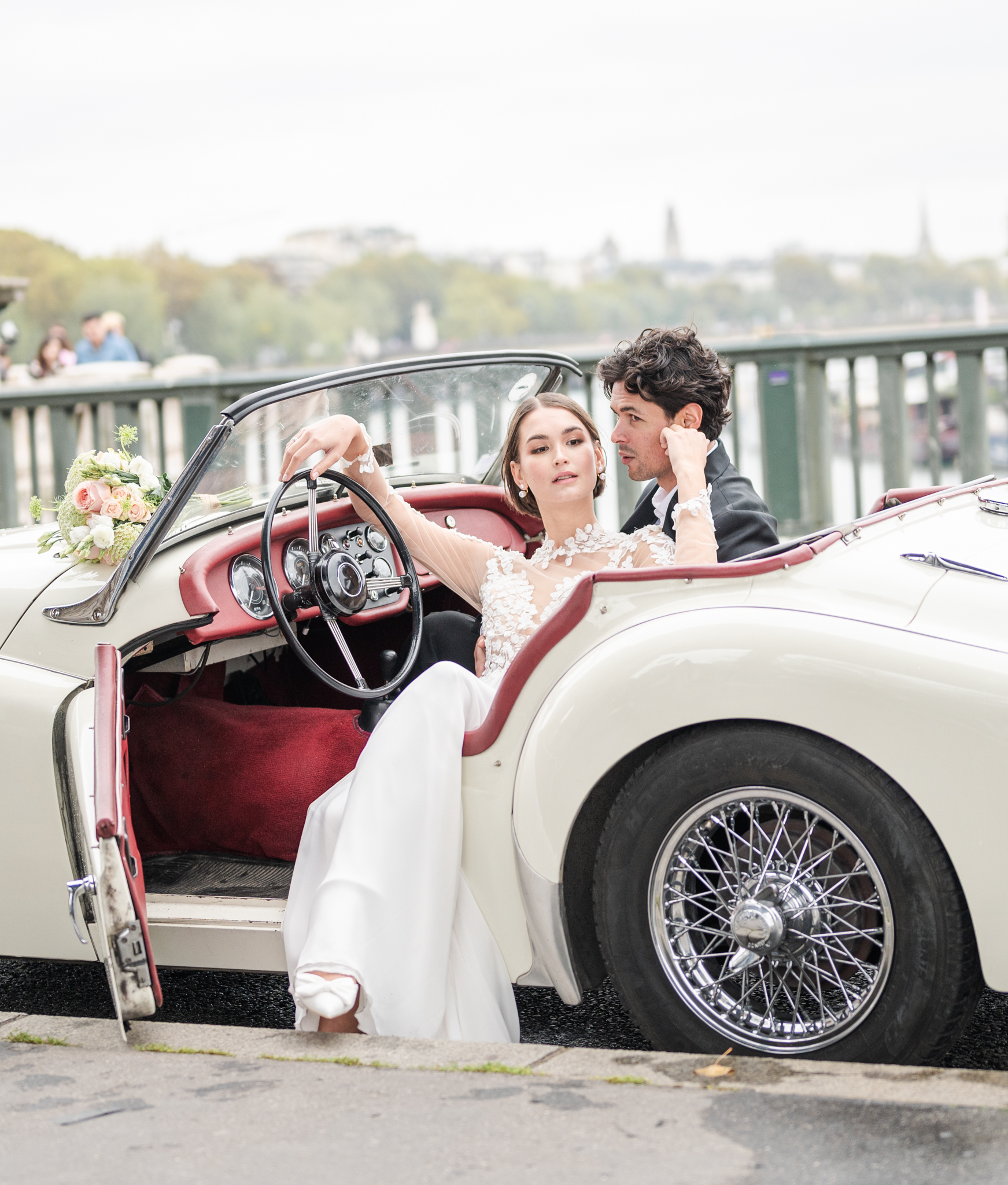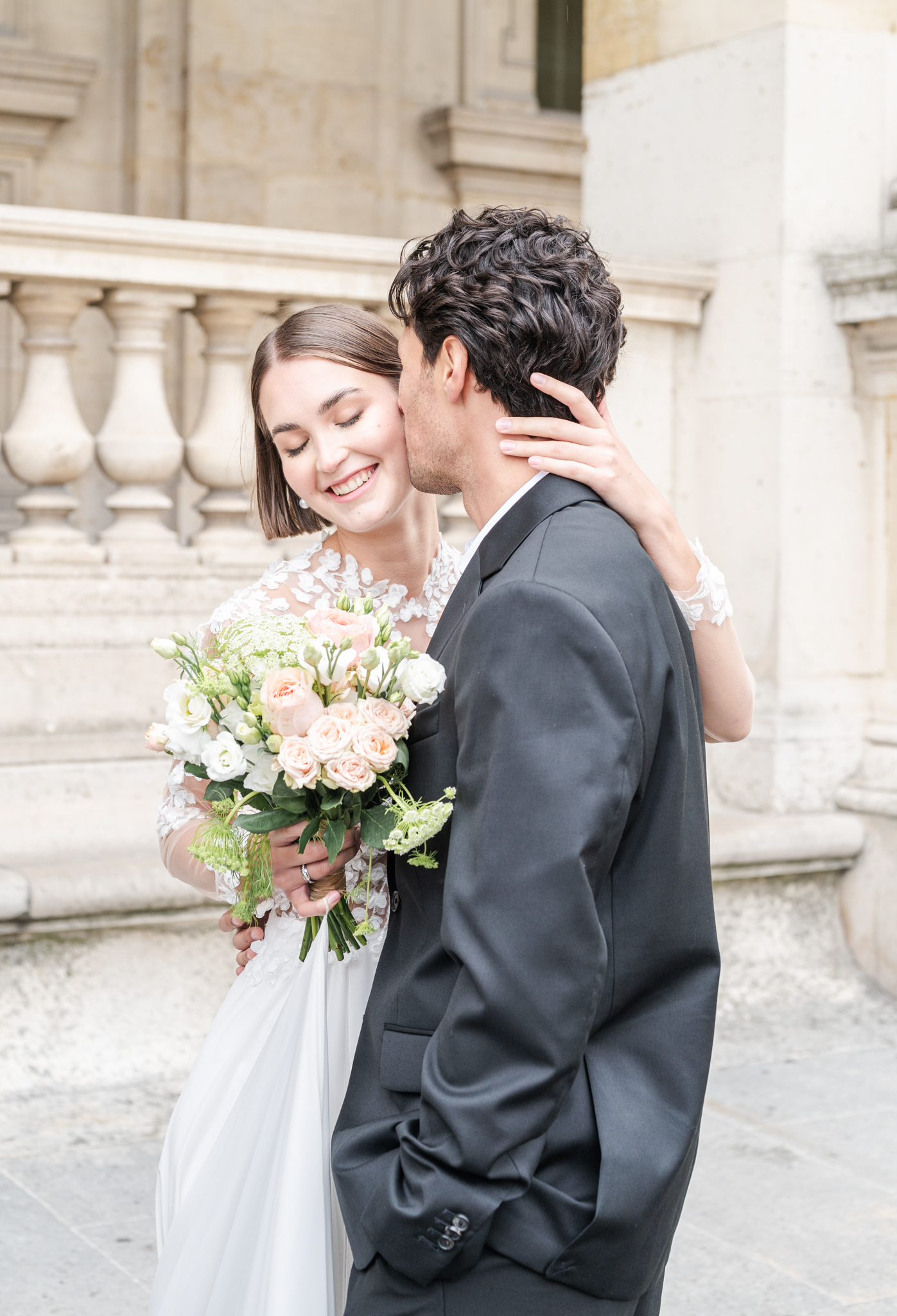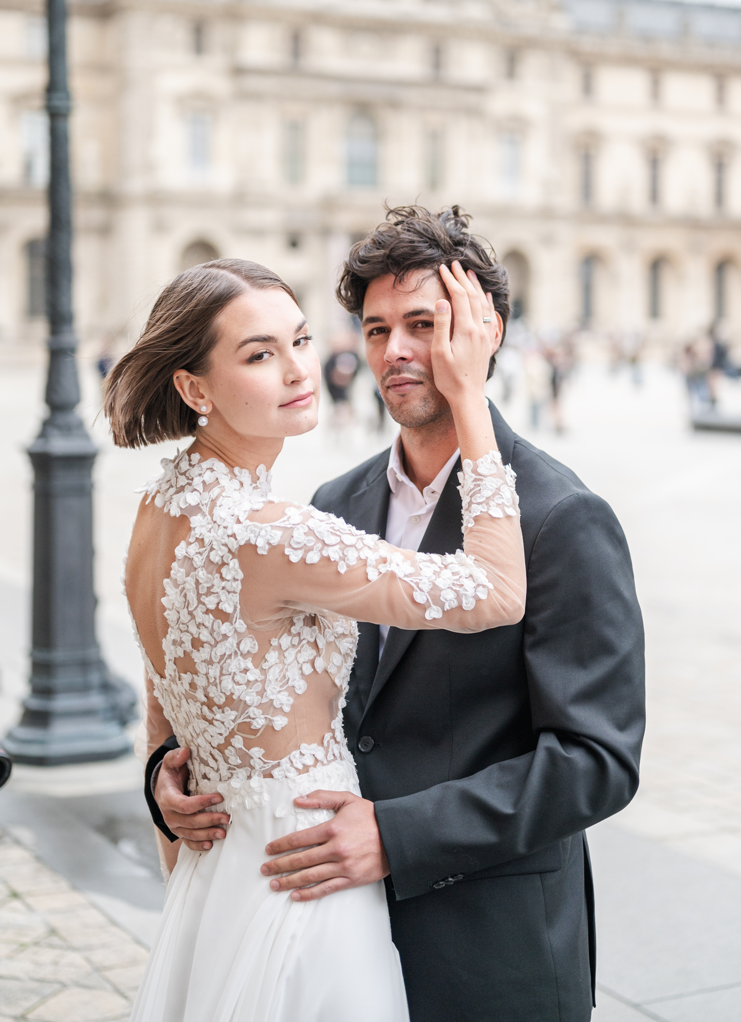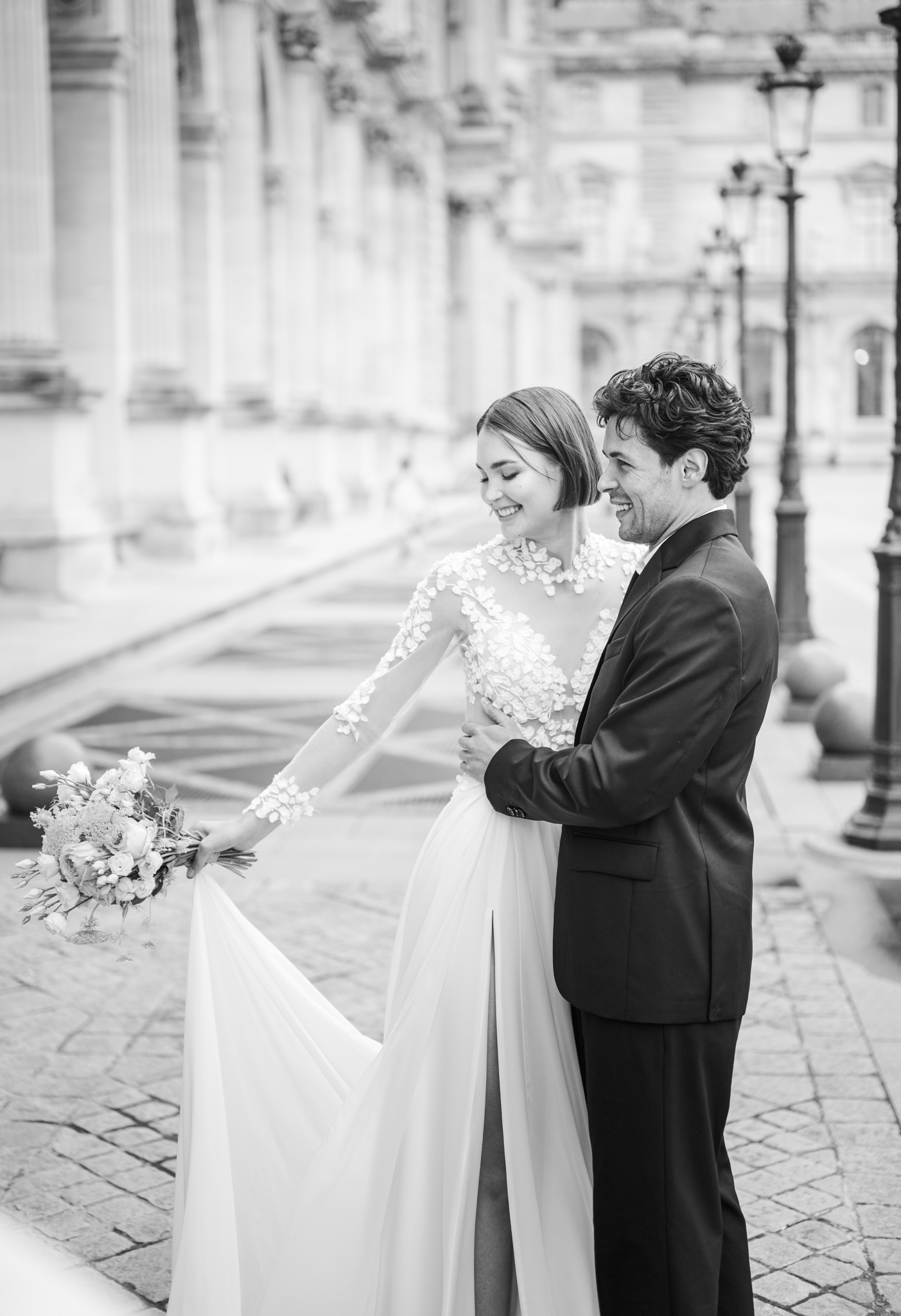 J’aime emmener mes mariés dans les lieux les plus emblématiques de Paris : une séance romantique au Trocadéro avec la Tour Eiffel en arrière-plan, une promenade main dans la main sur les Quais de Seine, ou encore quelques instants suspendus devant le Pont Alexandre III, véritable décor de cinéma.