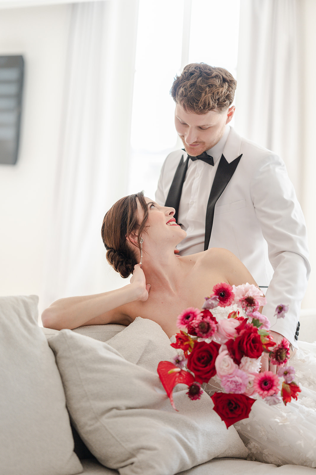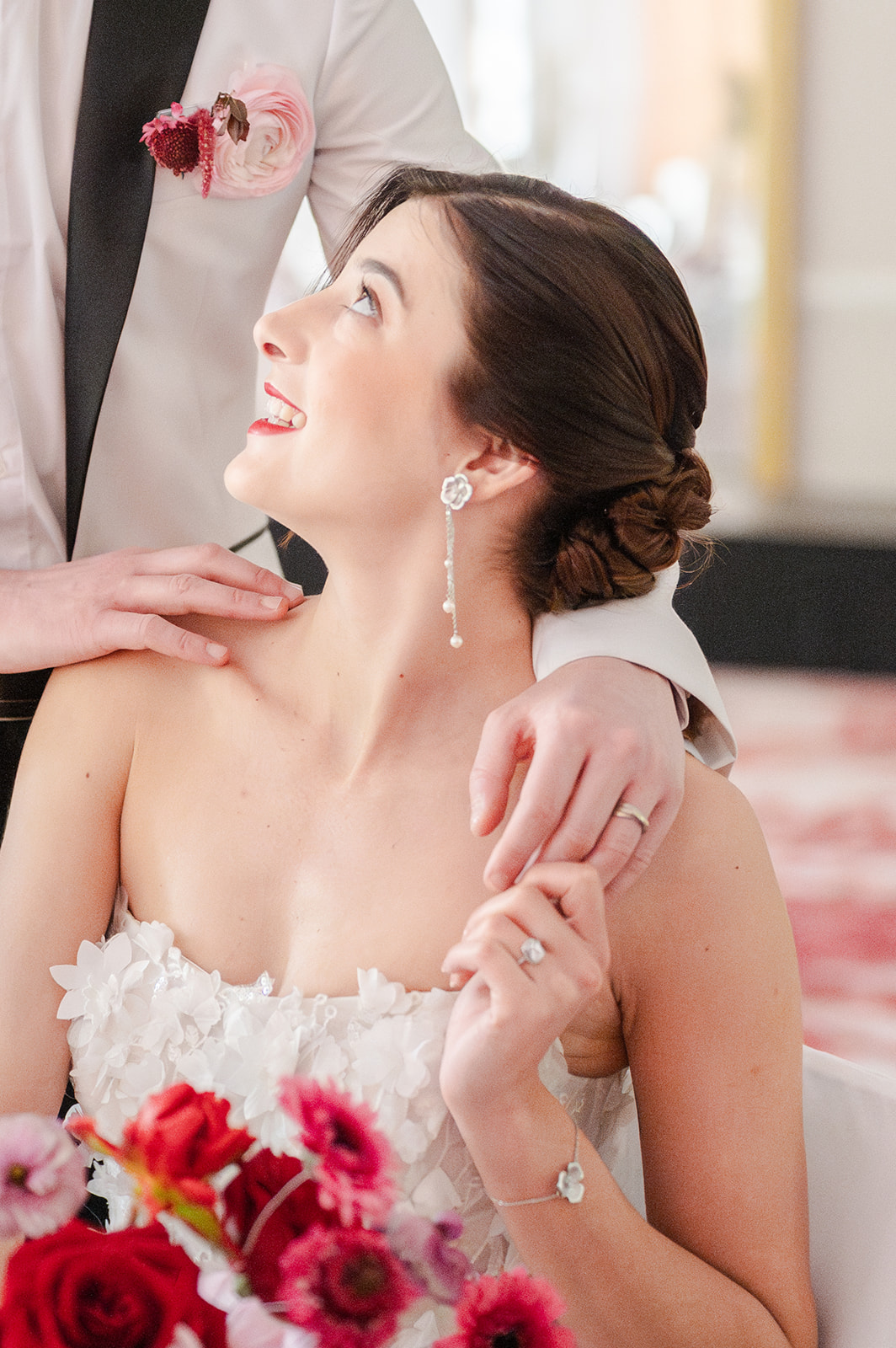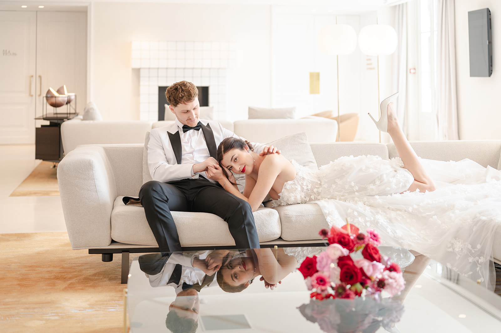 Lors de ce mariage, j’ai eu la chance d’accompagner les mariés tout au long de leur journée : des préparatifs dans les suites baignées de lumière, à la cérémonie dans les jardins, jusqu’à la soirée dans l’une des superbes salles du domaine. Chaque espace du Dolce Versailles se prête magnifiquement à la photographie : façades chargées d’histoire, allées arborées, jeux d’ombres et de lumière au coucher du soleil… tout y invite à raconter une histoire authentique et romantique.