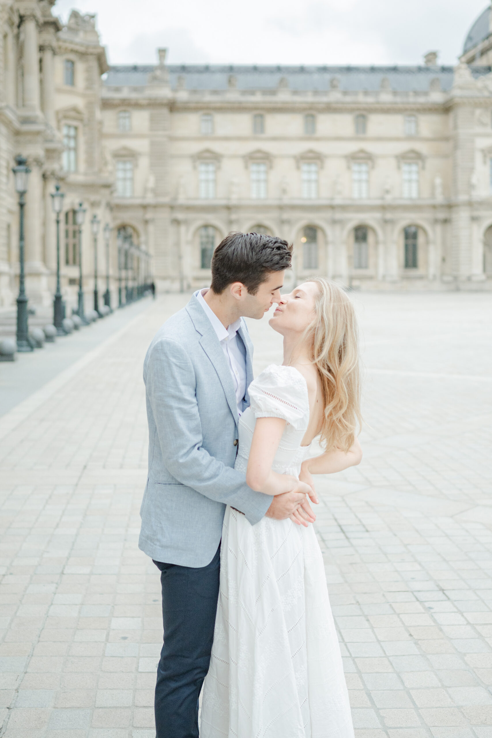 Le jour de la séance photo couple à Paris, nous prenons le temps de nous promener dans le lieu choisi. La séance dure généralement entre une et deux heures, ce qui permet de varier les décors et de capturer différents moments.