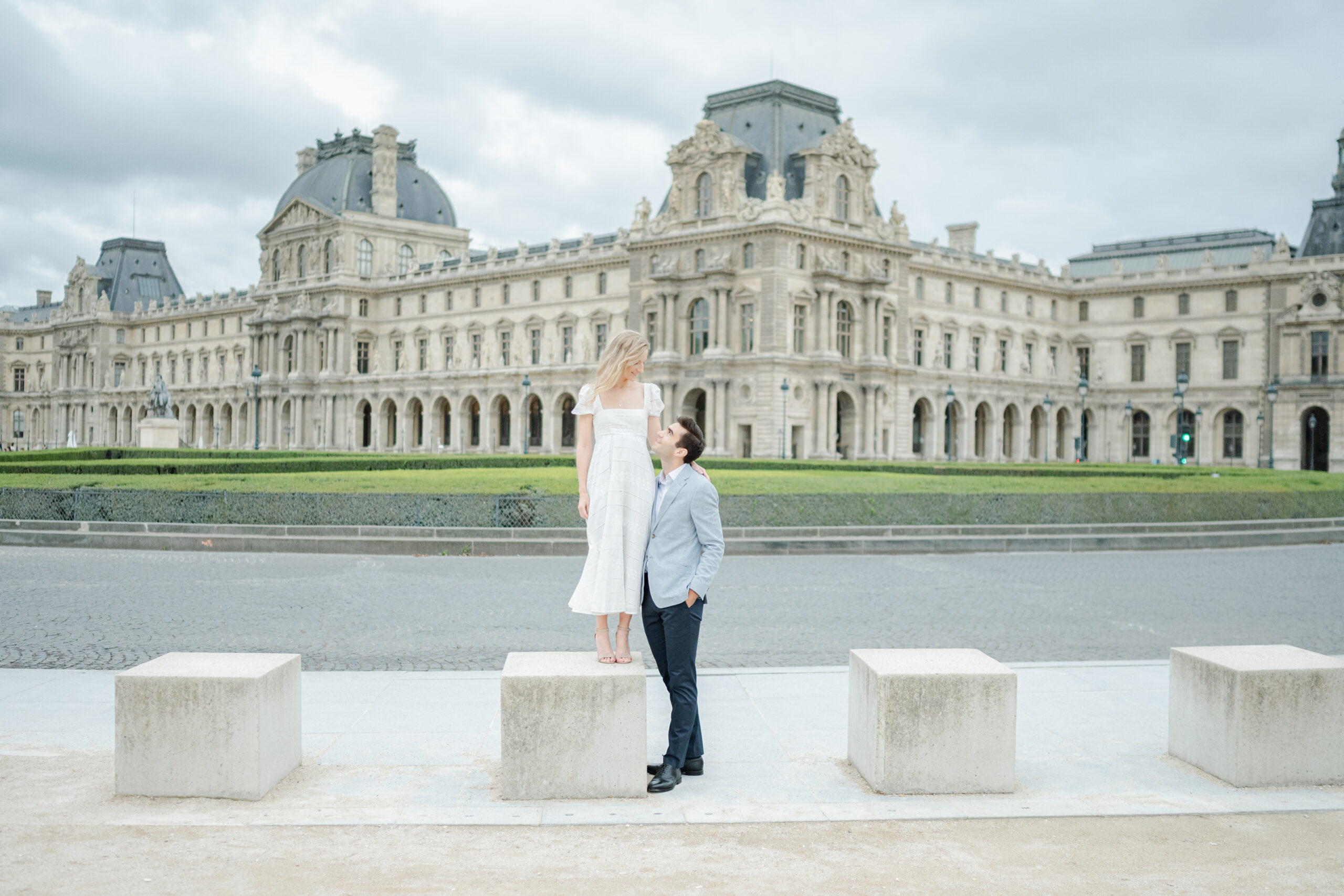 Ces lieux offrent une architecture élégante et intemporelle. Ils sont idéaux pour une séance photo couple à Paris à la fois artistique et lumineuse.