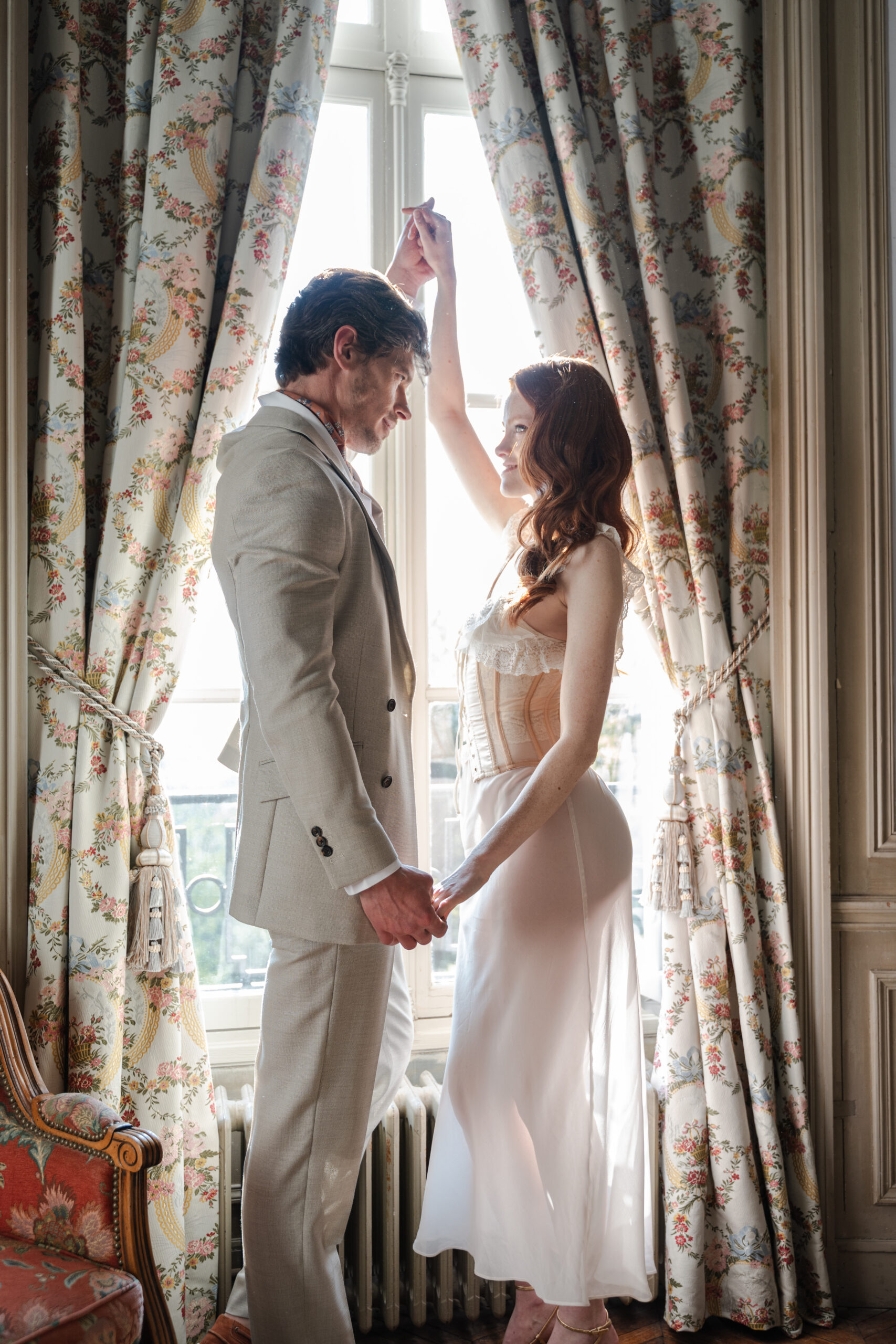 Ils se sont approprié chaque espace du château : les façades en pierre pour des moments forts et intemporels, les jardins pour des instants plus libres et naturels, et les intérieurs pour des images plus intimes, presque confidentielles.