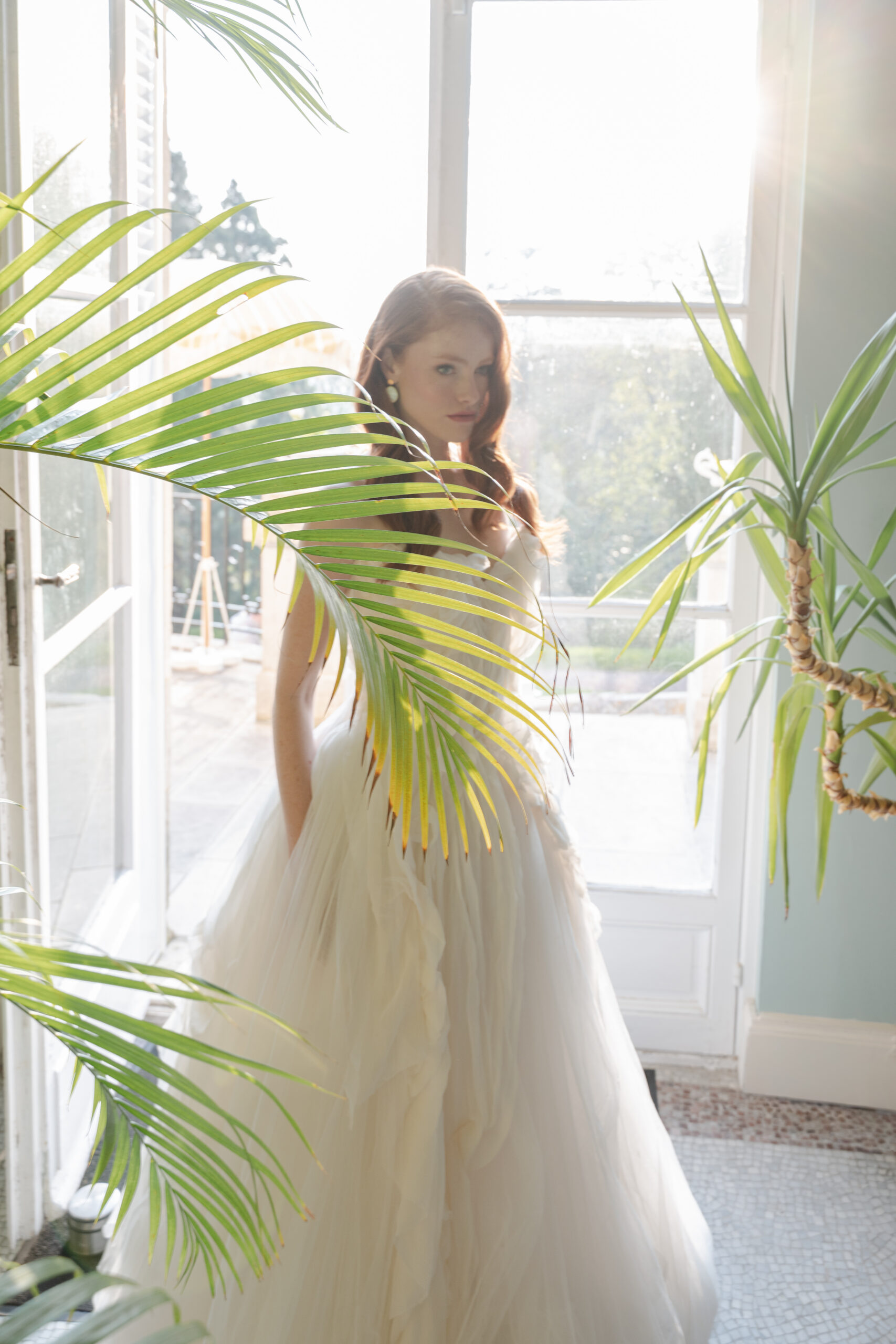 Ce qui rend ce reportage unique, c’est la collaboration étroite entre photographie et design floral. Avec Caroll Clinard, chaque détail a été pensé en amont pour créer une harmonie visuelle forte et cohérente.