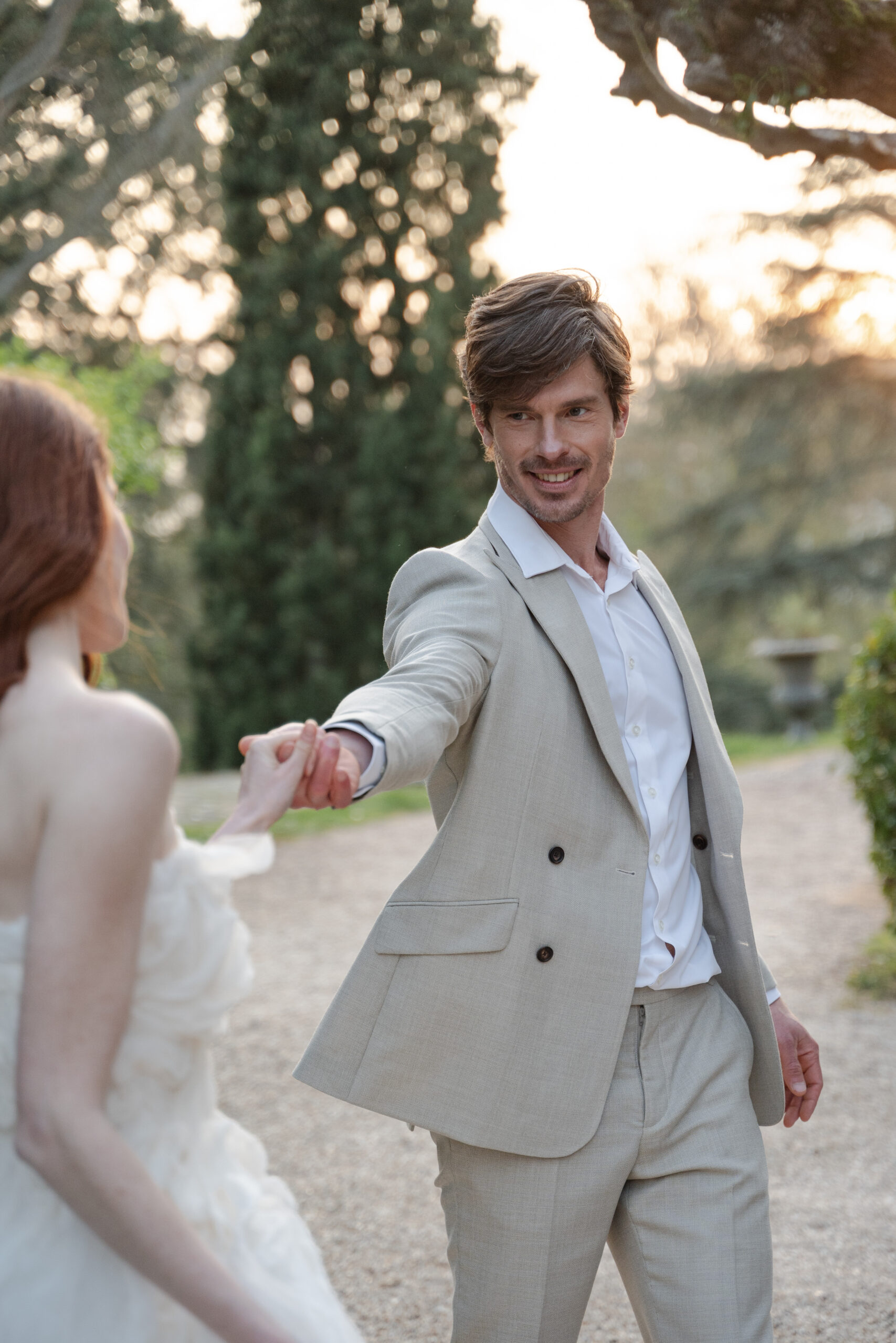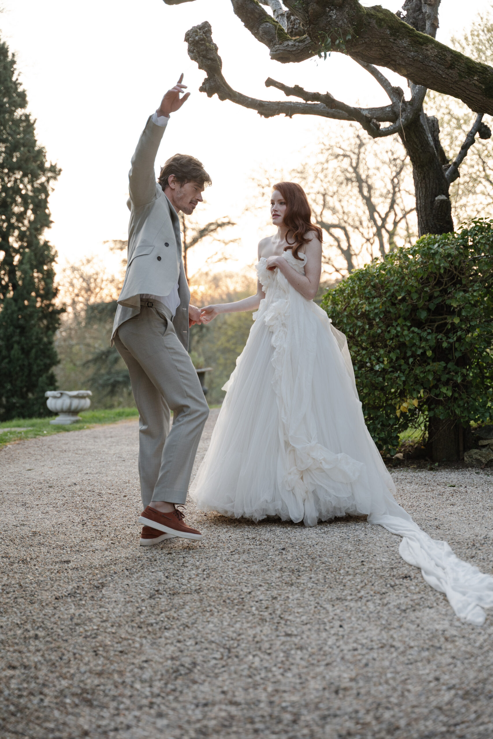 Les mariés souhaitaient des images qui leur ressemblent : naturelles, sincères, mais avec une vraie sensibilité esthétique. Mon approche éditoriale, inspirée de la photographie de mode, m’a permis de capter leurs émotions avec spontanéité, tout en travaillant la lumière, le mouvement et la composition.