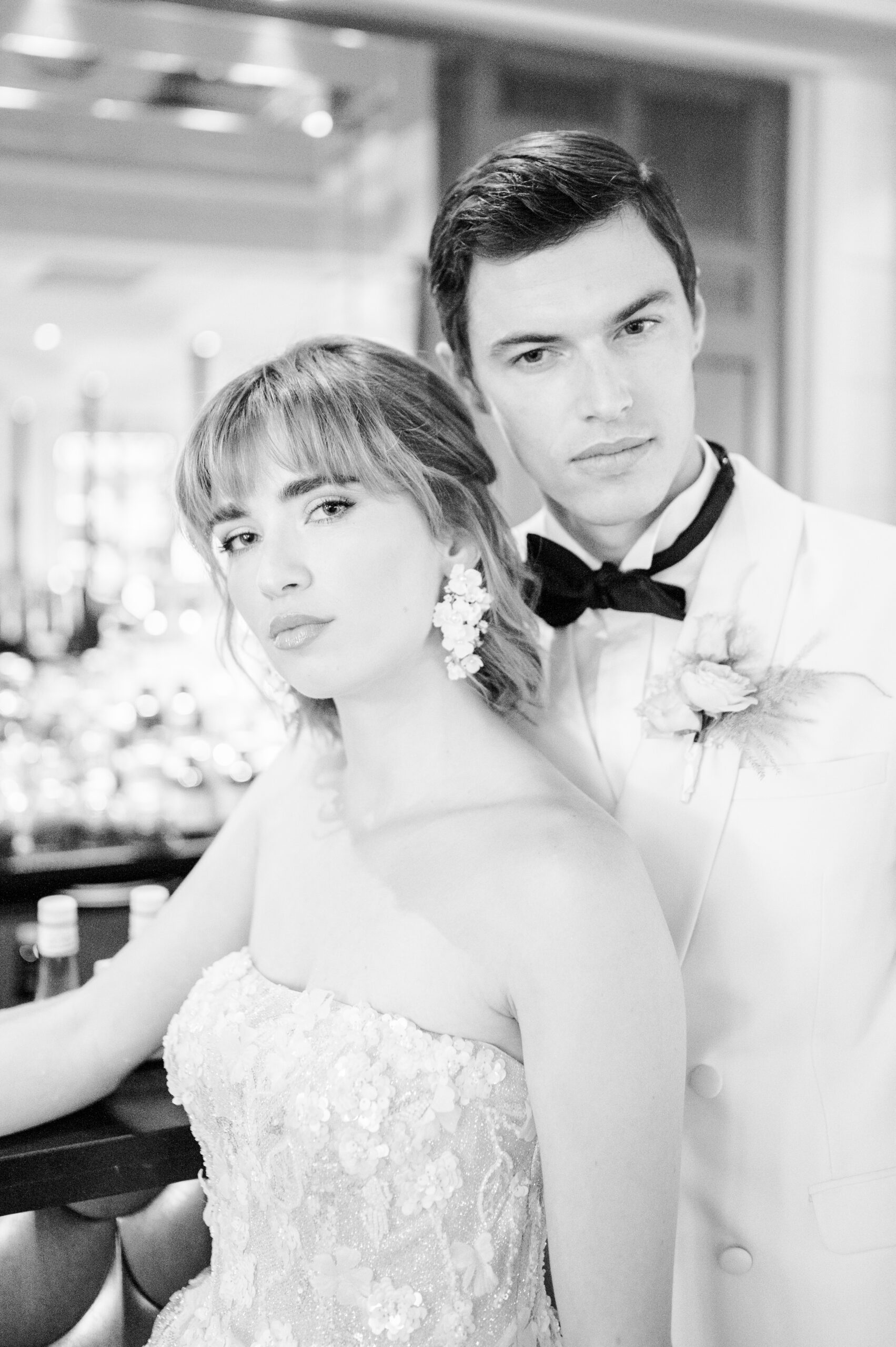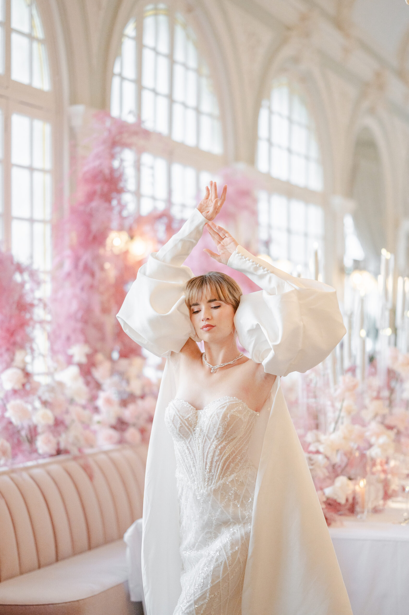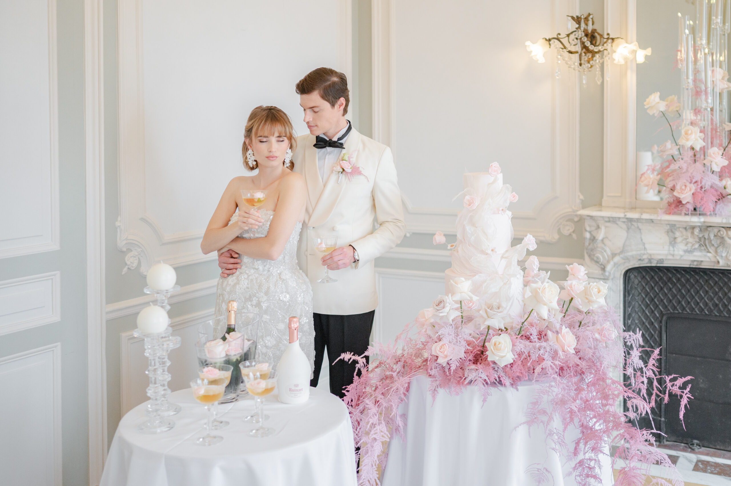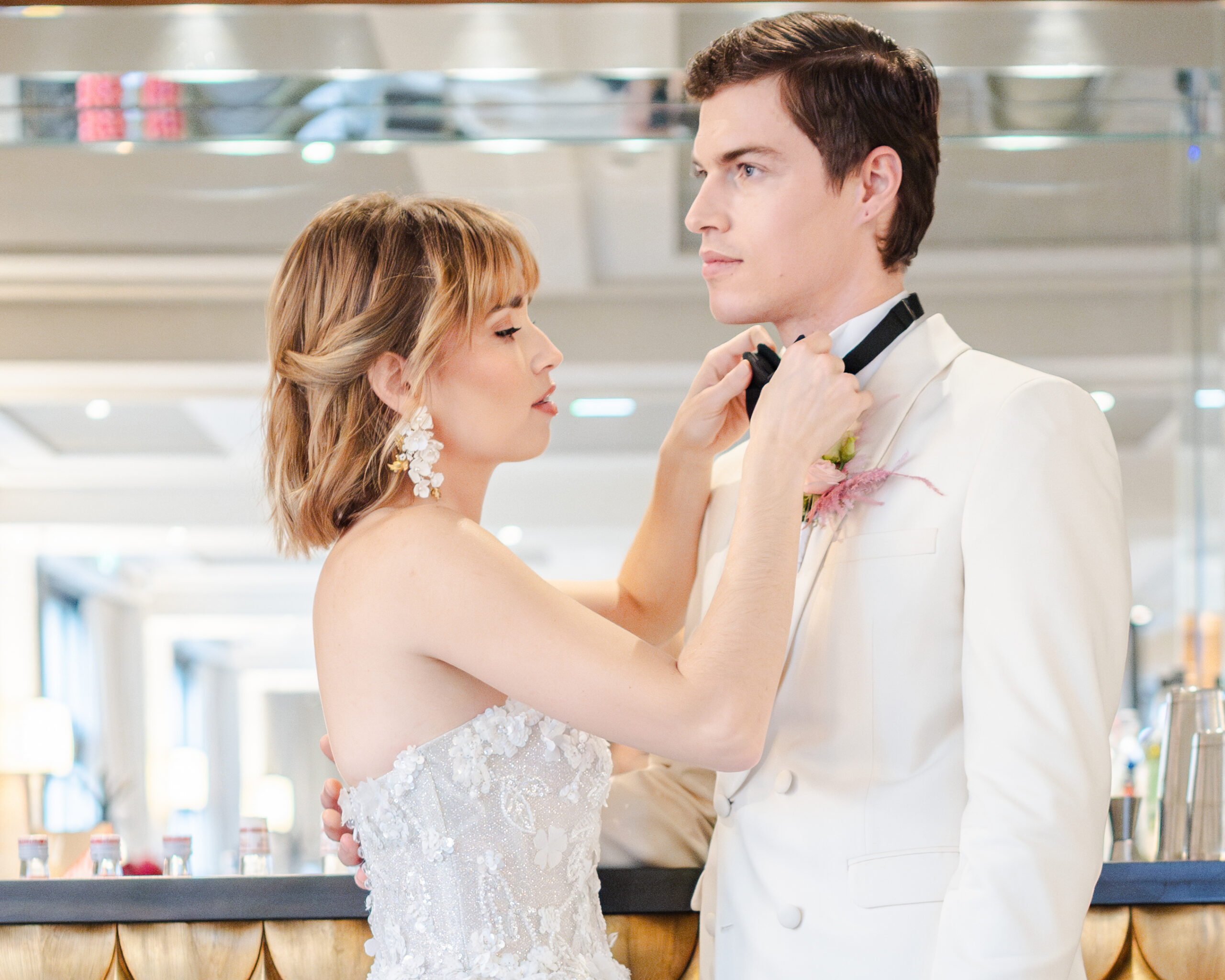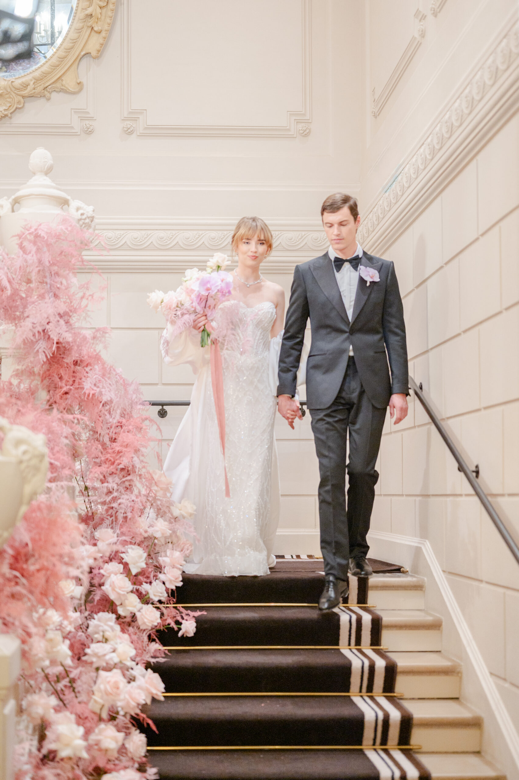 Ce reportage mariage a été magnifié par une décoration florale exceptionnelle réalisée par la designer floral Caroll Clinard, pensée pour dialoguer avec l’architecture du lieu et renforcer son identité visuelle.