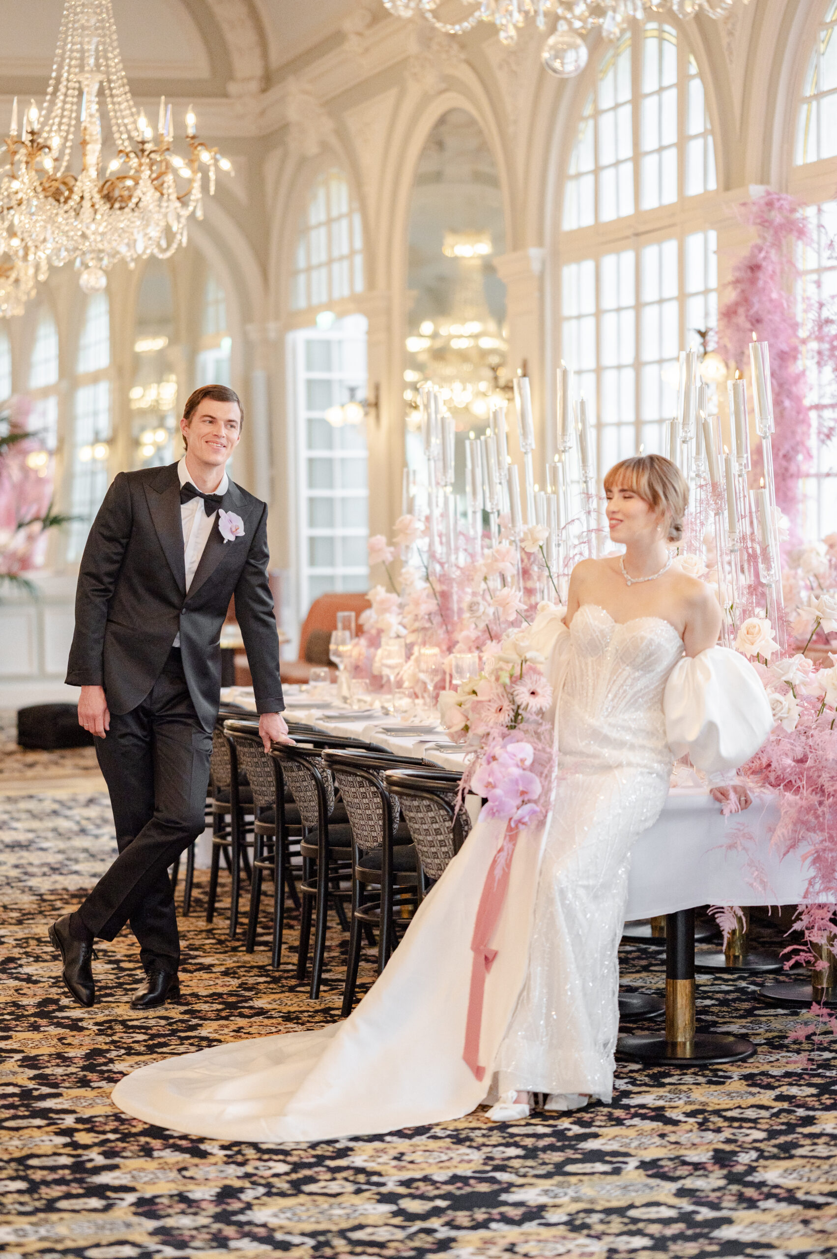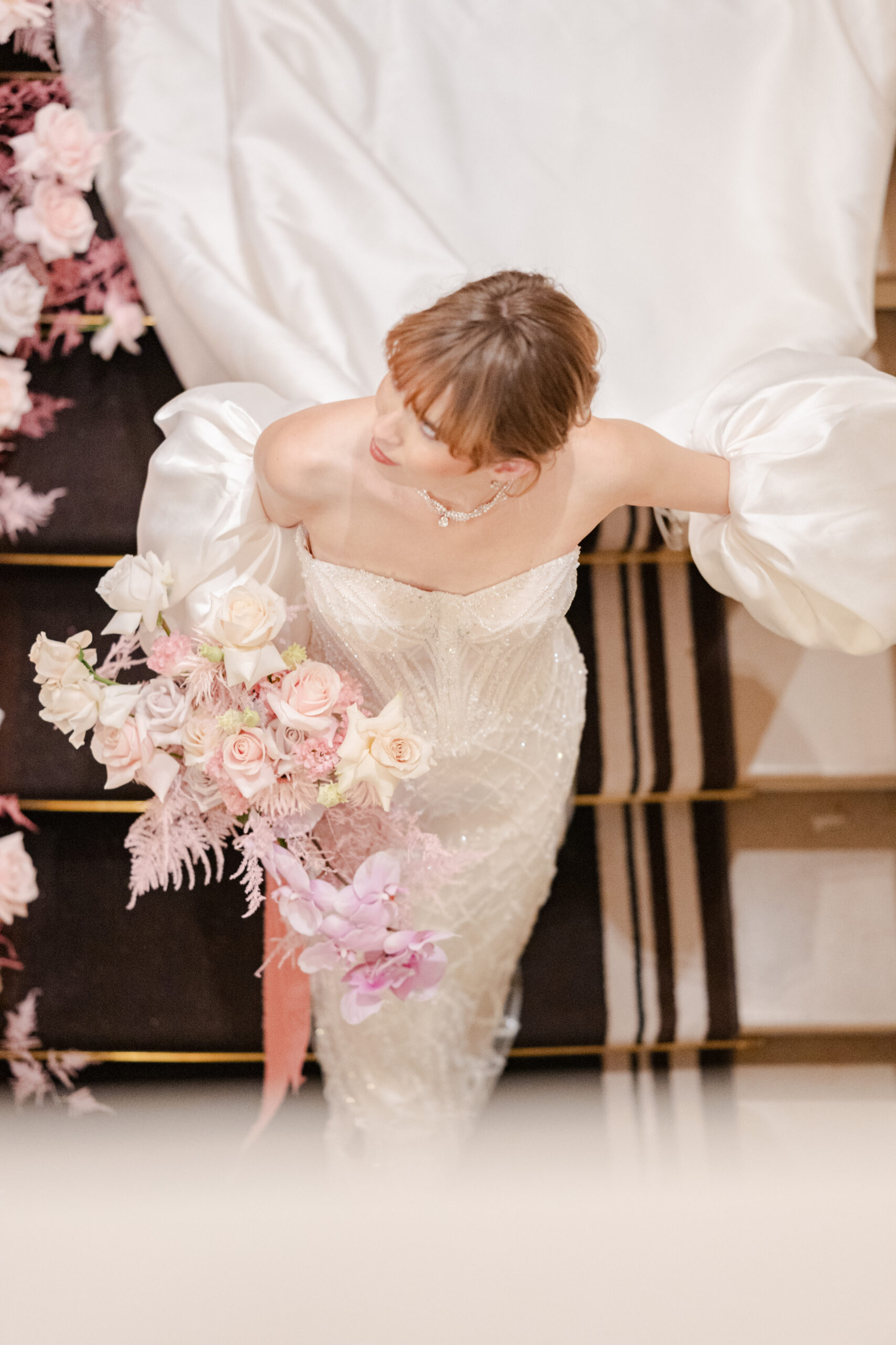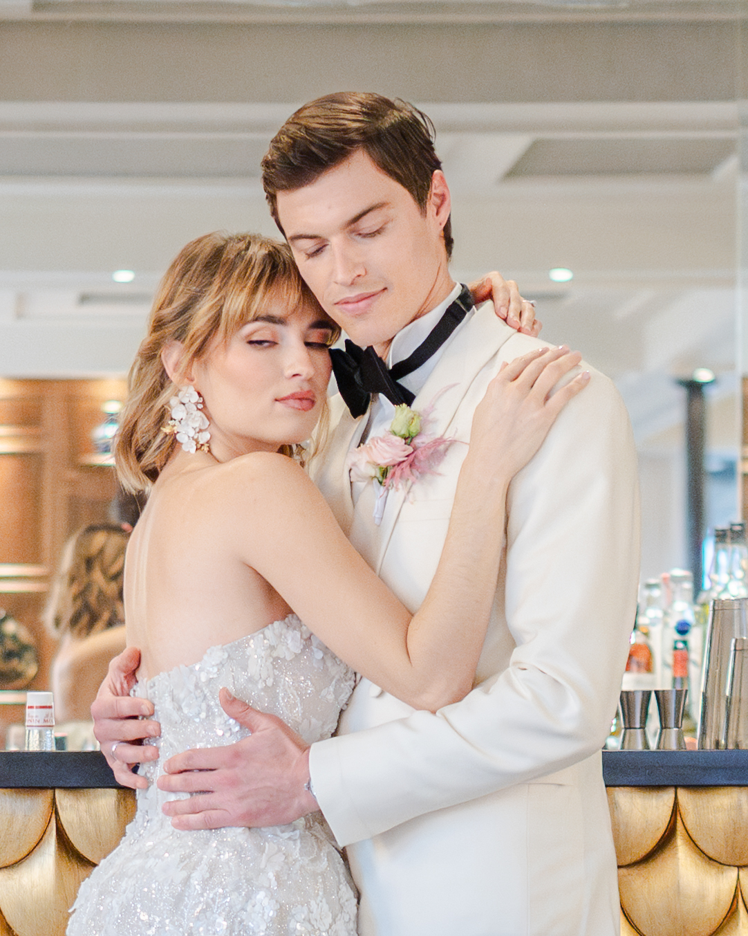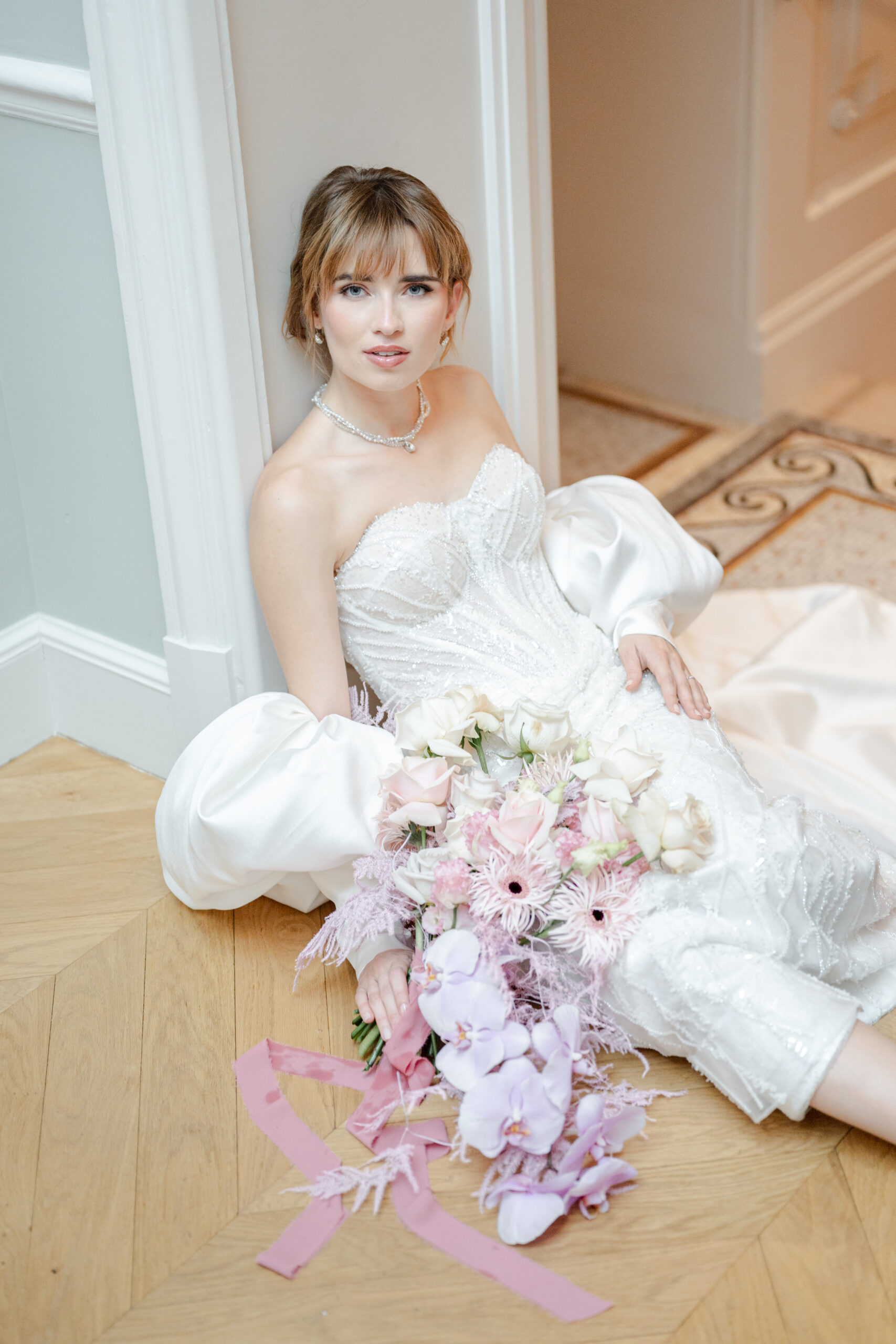 Ce reportage mariage a été magnifié par une décoration florale exceptionnelle réalisée par la designer floral Caroll Clinard, pensée pour dialoguer avec l’architecture du lieu et renforcer son identité visuelle.