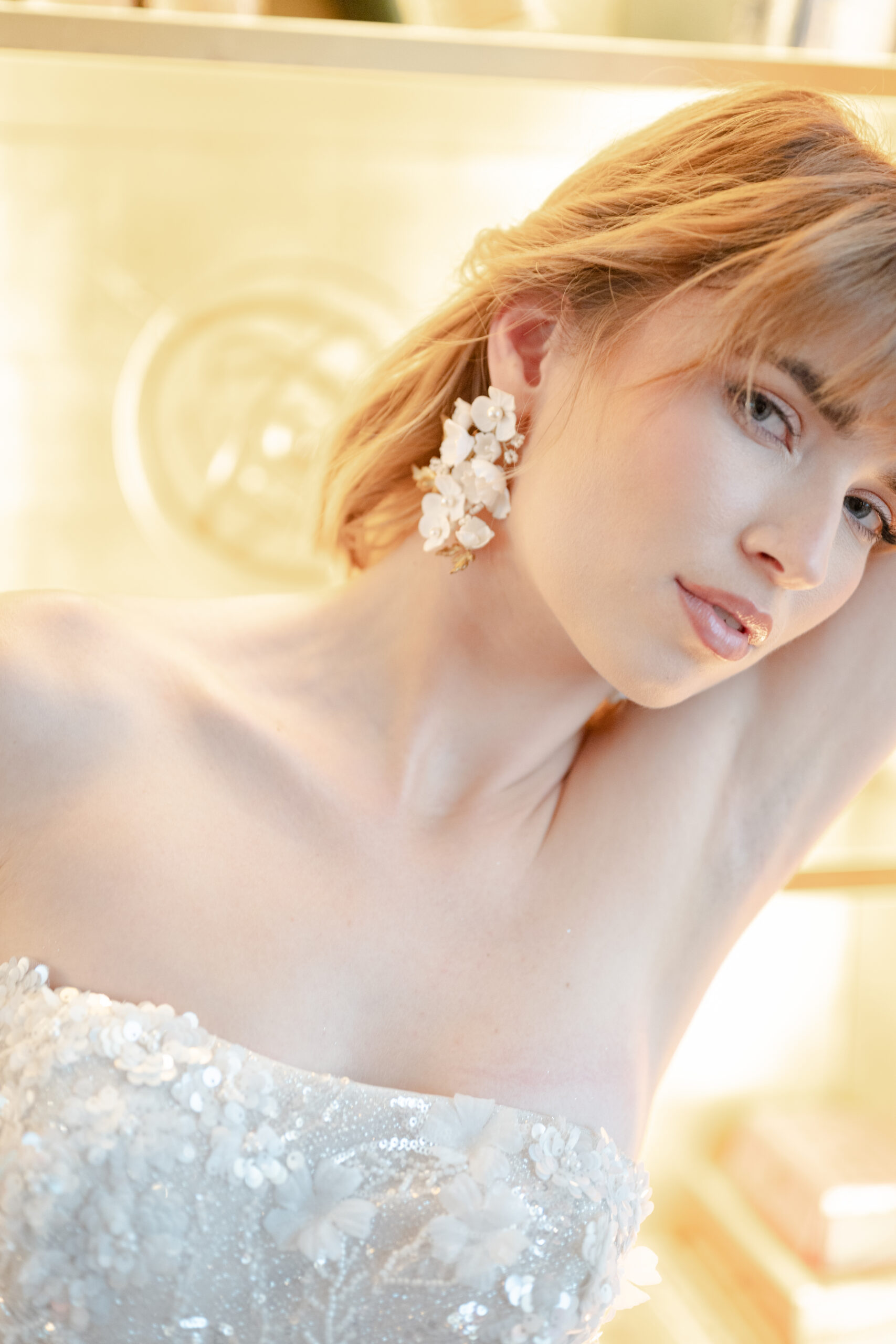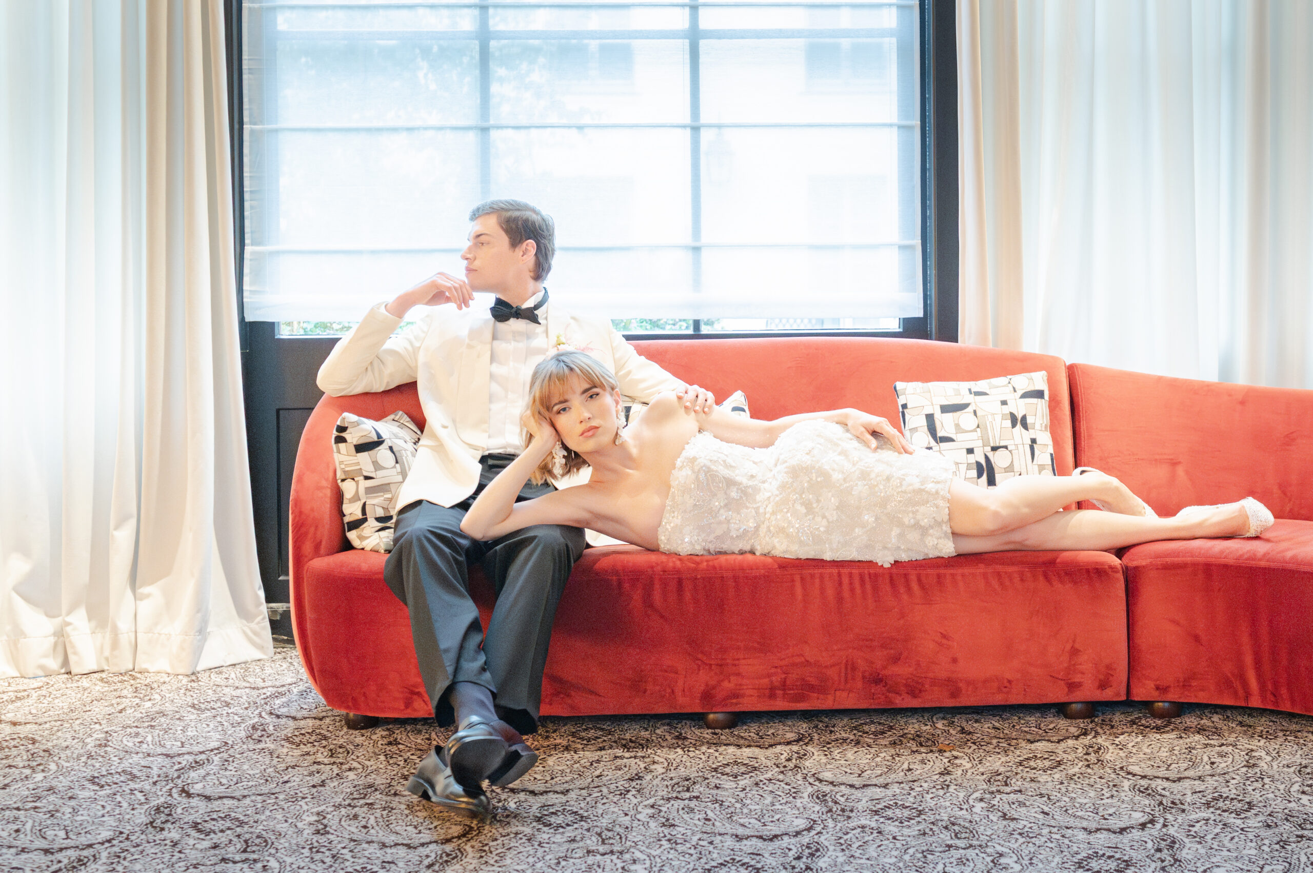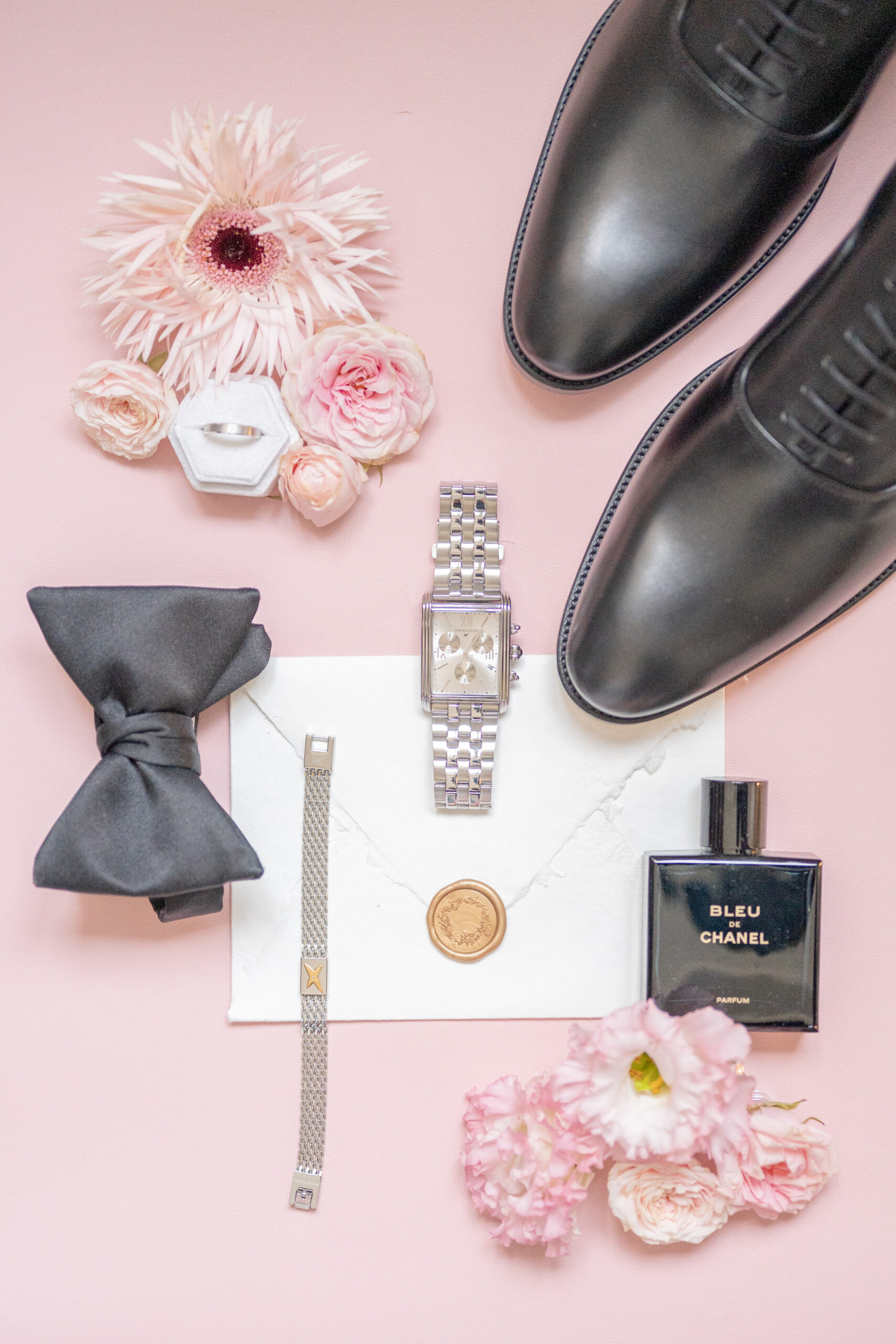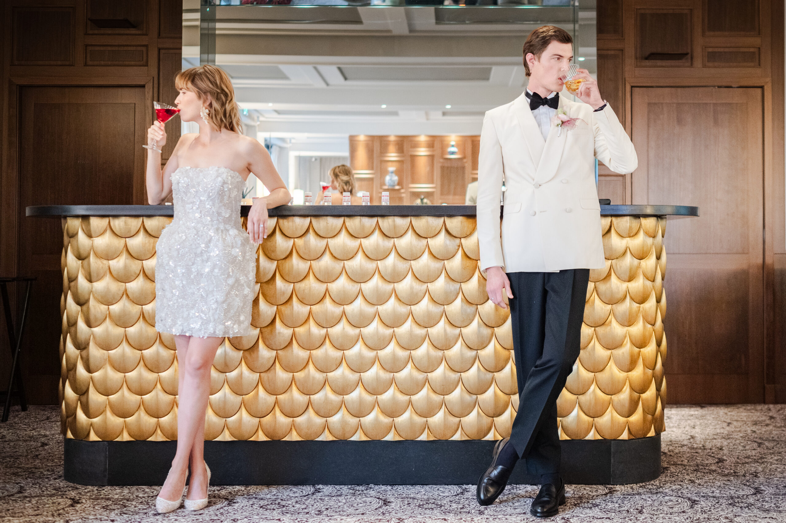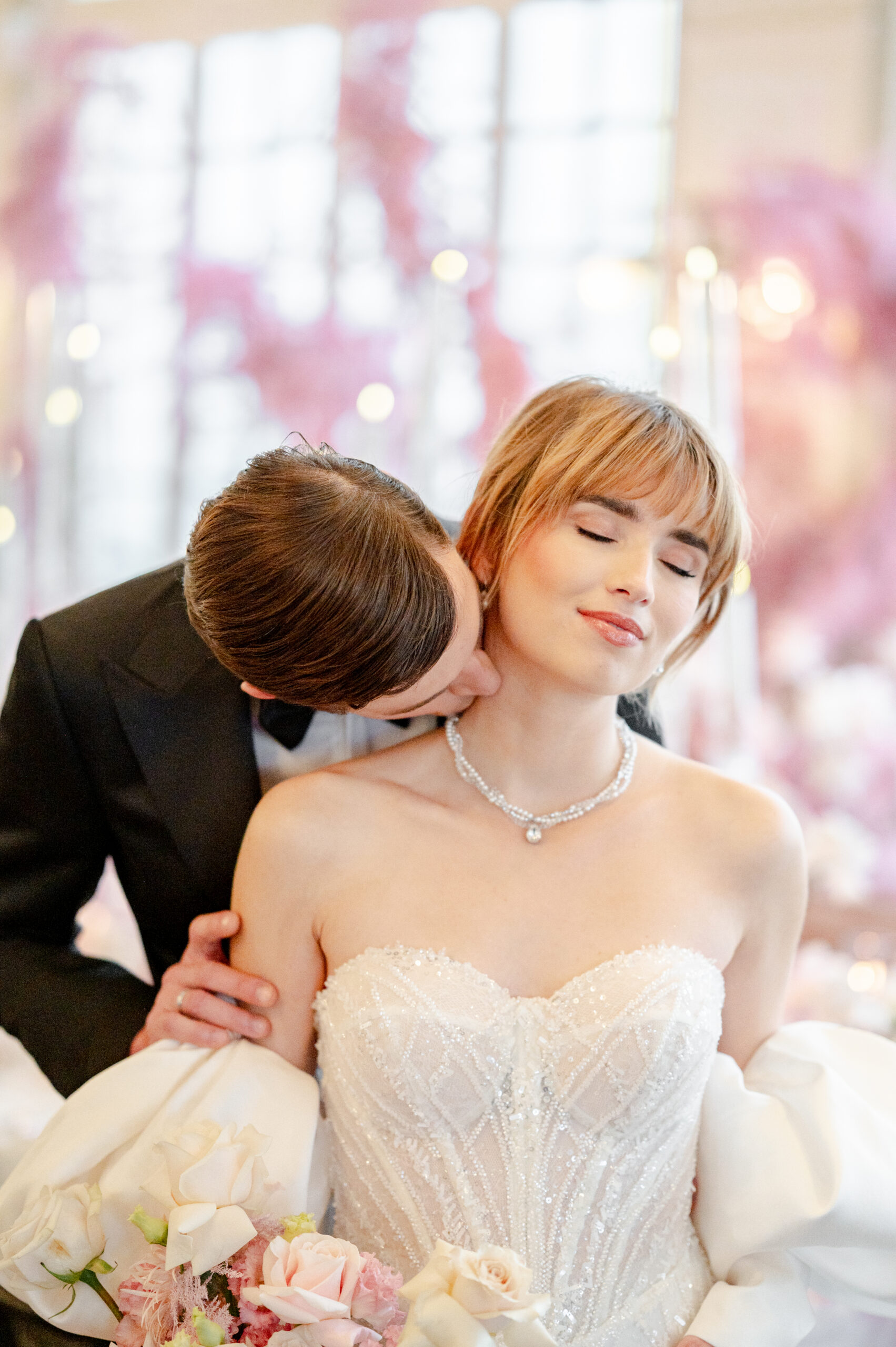 Ce reportage mariage a été magnifié par une décoration florale exceptionnelle réalisée par la designer floral Caroll Clinard, pensée pour dialoguer avec l’architecture du lieu et renforcer son identité visuelle.