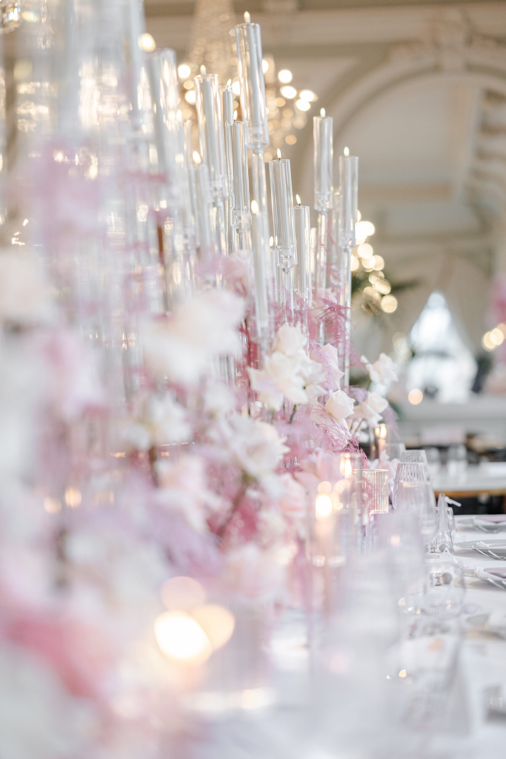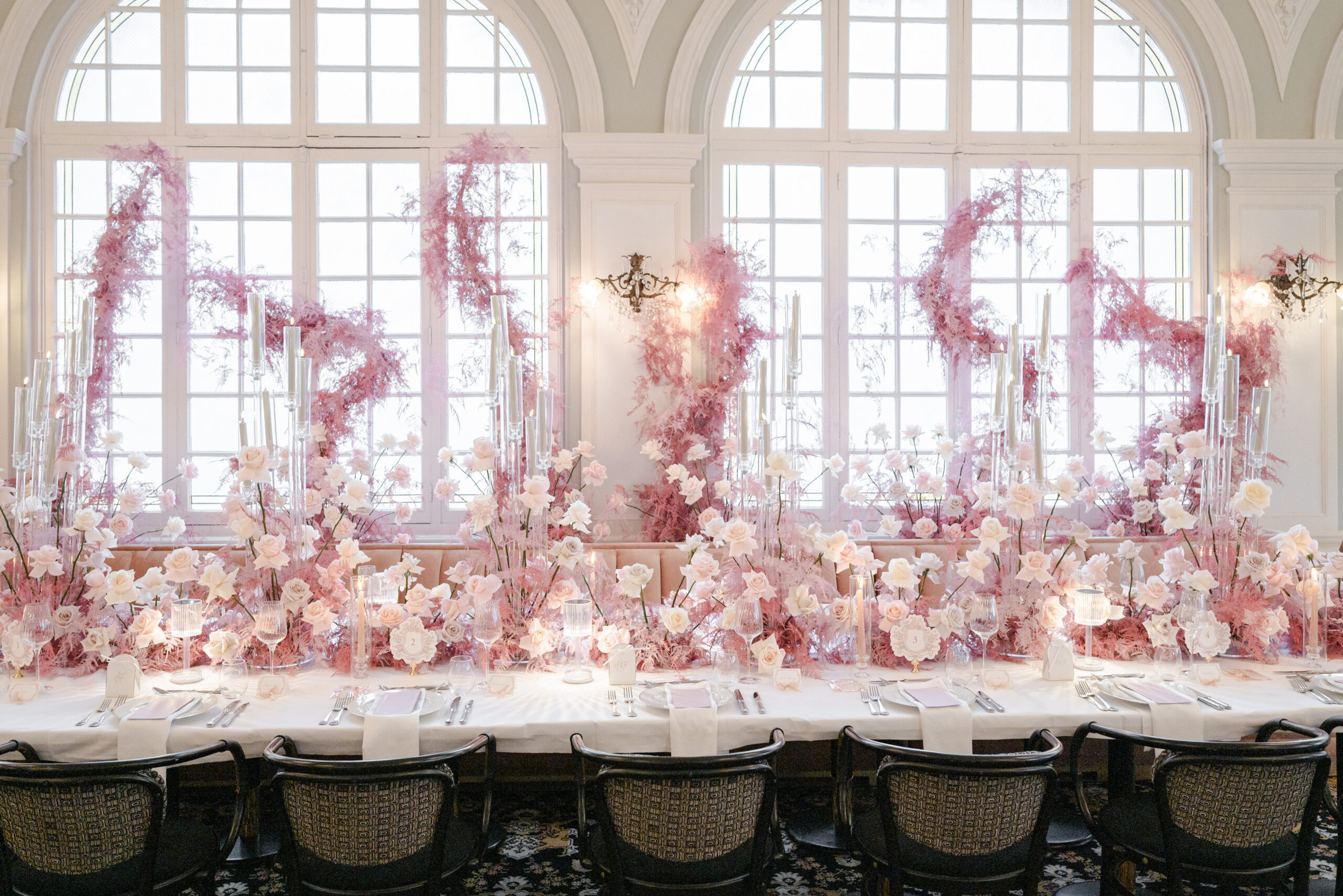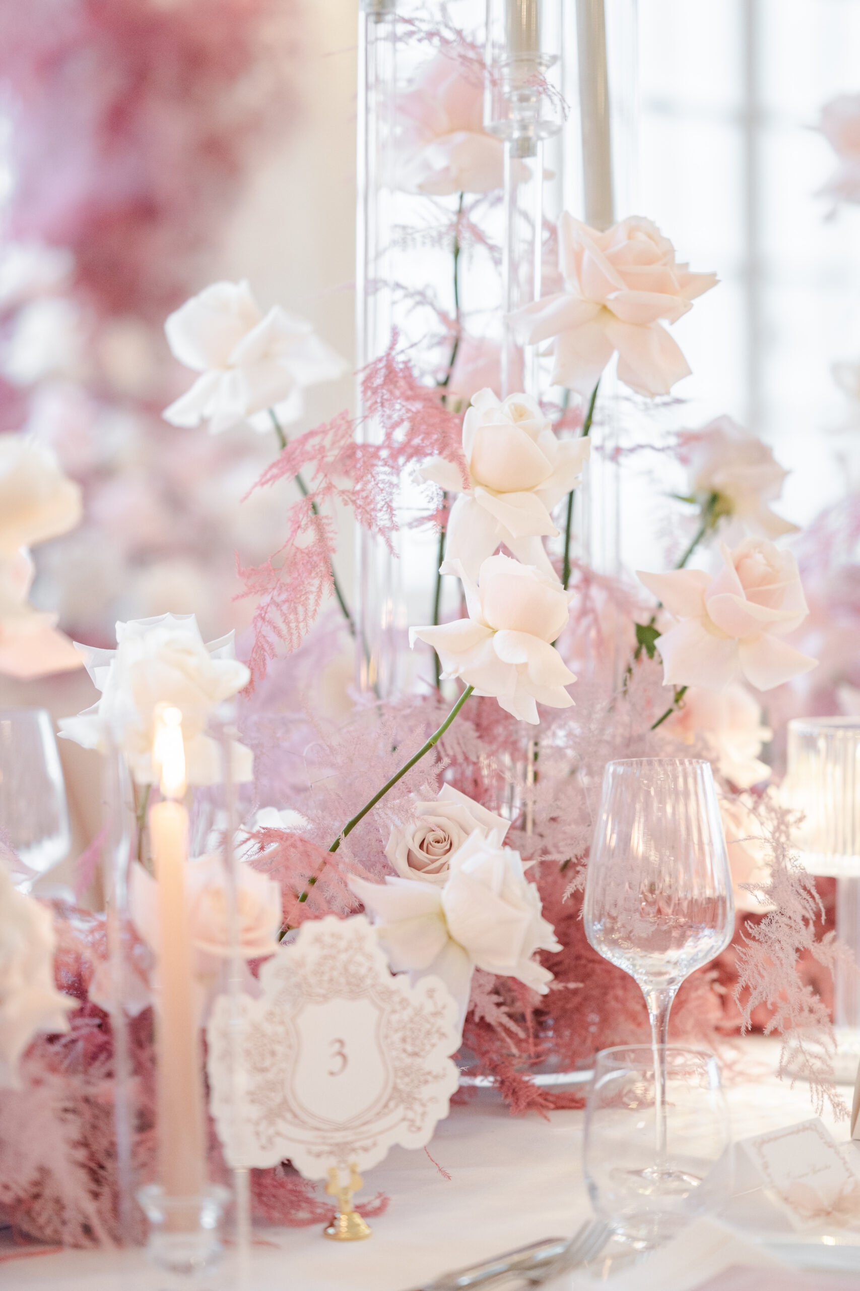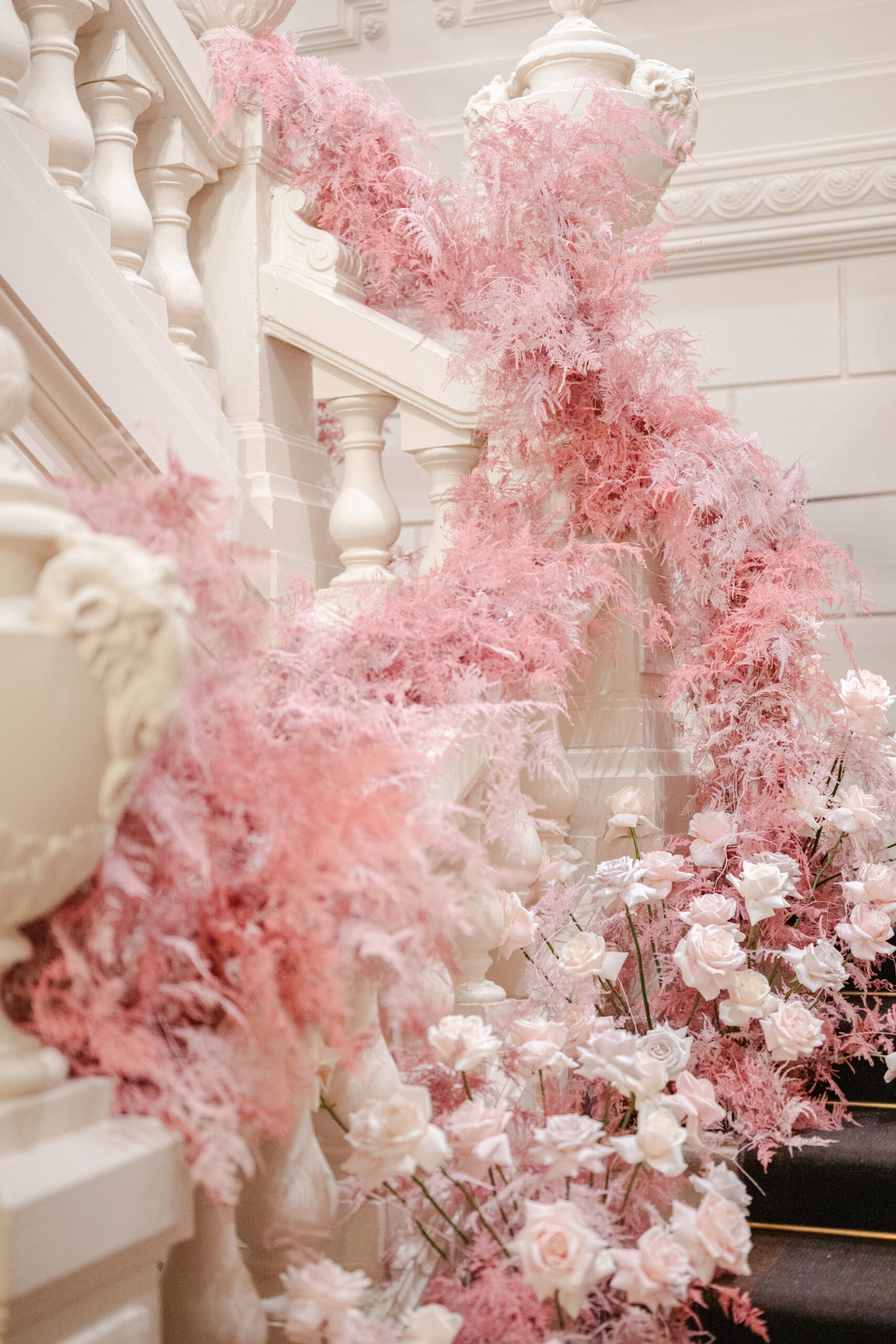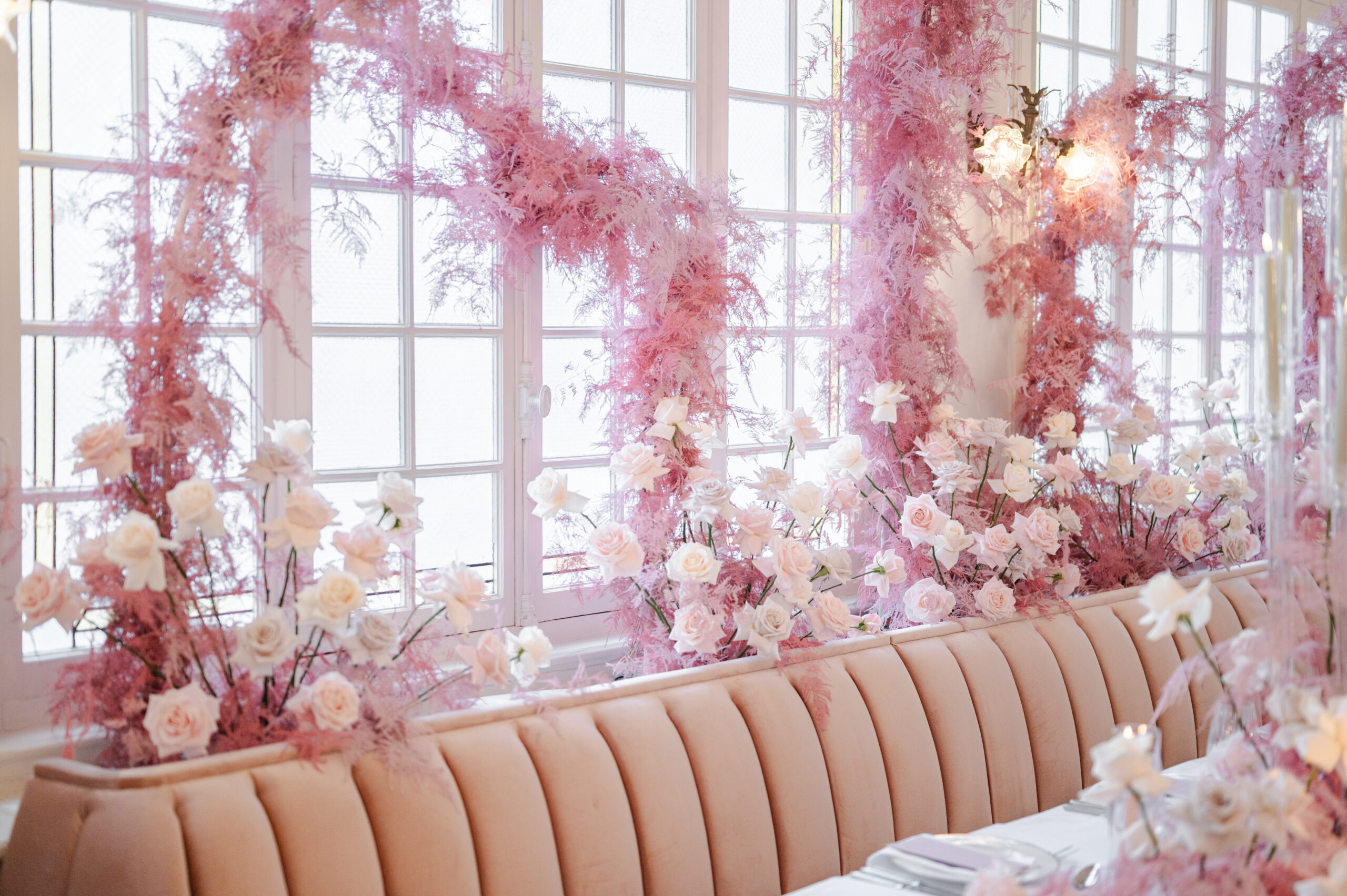 Les compositions florales ont été imaginées avec une approche artistique précise, jouant sur les volumes, les textures et les couleurs pour créer une atmosphère immersive et élégante. L’objectif était de transformer les espaces de l’hôtel en une véritable scène poétique, où chaque détail participe à l’émotion du mariage.