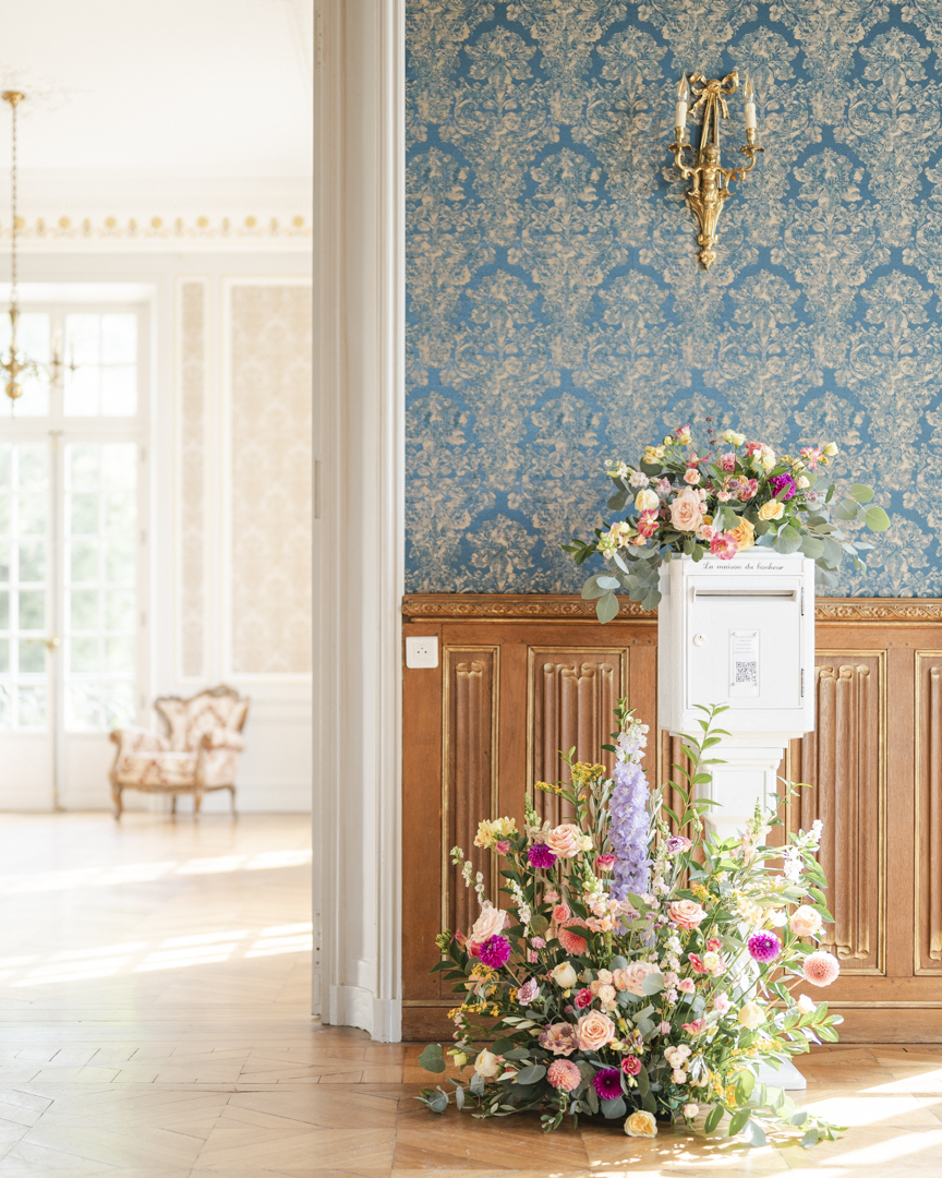 2. Harmonisez votre décoration : Inspirez-vous du lieu pour vos couleurs, vos fleurs et votre papeterie. Les tons neutres, poudrés ou dorés s’intègrent parfaitement à l’ambiance du château.