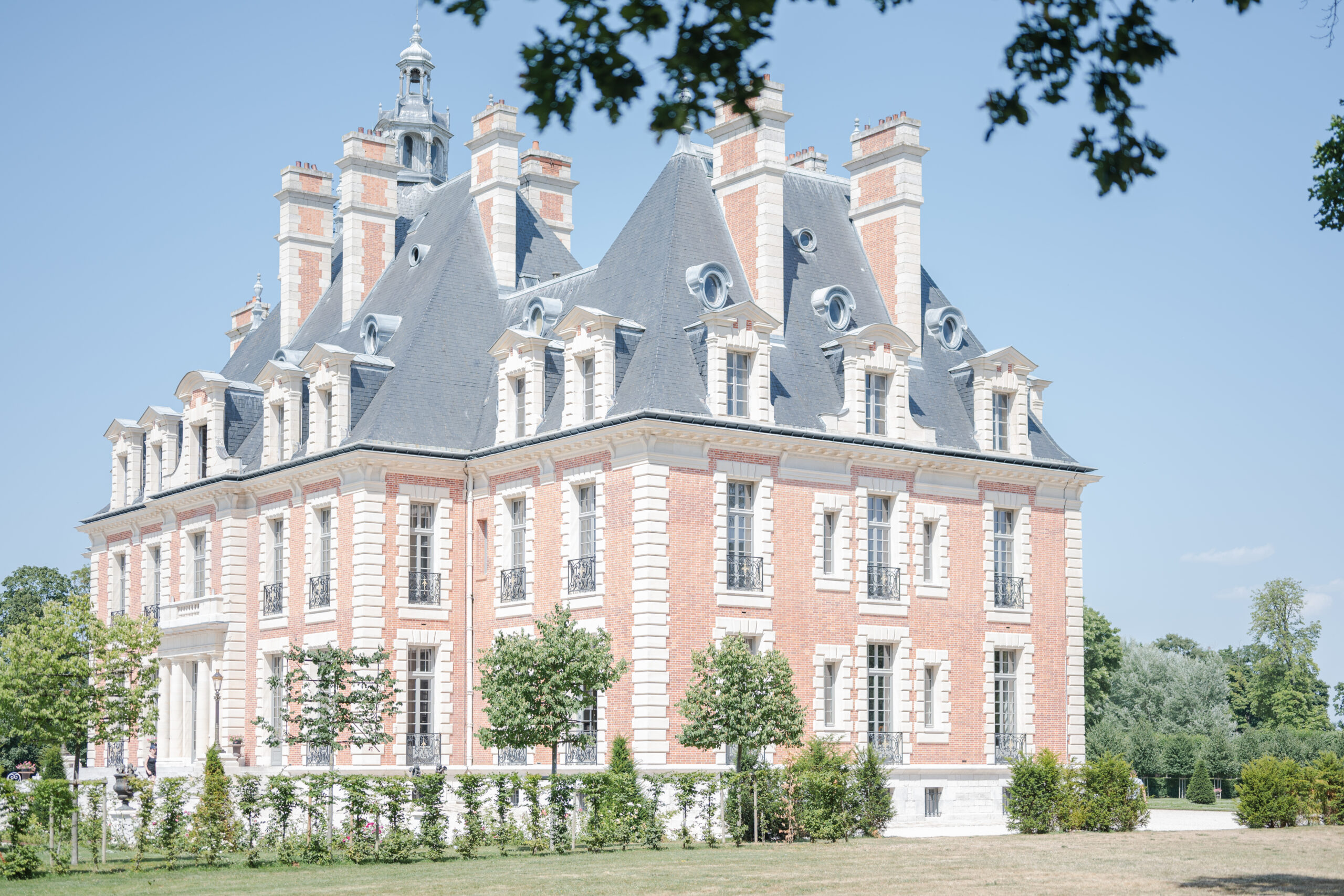 Le château est entouré d’un vaste parc arboré, de jardins à la française et d’allées romantiques qui se parent de lumière au fil des heures. Le lieu offre une multitude de décors pour vos photos de couple, portraits de famille, ou même une séance d’engagement. La lumière naturelle y est douce et flatteuse, notamment en fin d’après-midi.